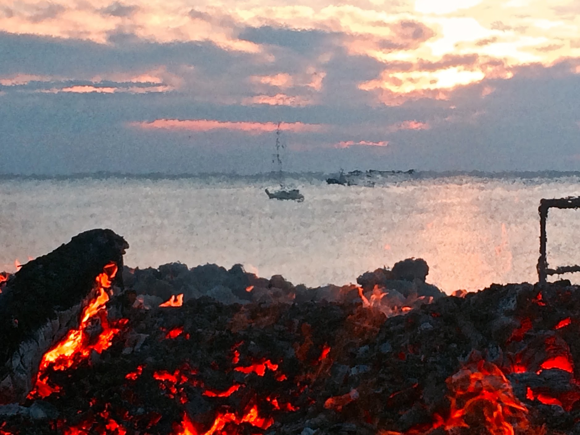 More importantly, we had absolutely no idea what we’ve been missing all these decades. The breathtaking power and splendor of Rockport’s giant bonfire tore its way into our psyches; seized every ounce of our attention. What struck me at first was how hot it was — those of us in front had to move back as the flames engulfed the outhouse atop the mountain of fiery palates. Turning around I noticed the crowd of several thousand people all stood transfixed — and very quiet. So quiet, in fact, that the blaze was the loudest sound you could hear — and it wasn’t nearly as loud as the band at the bandstand had been a few minutes earlier.