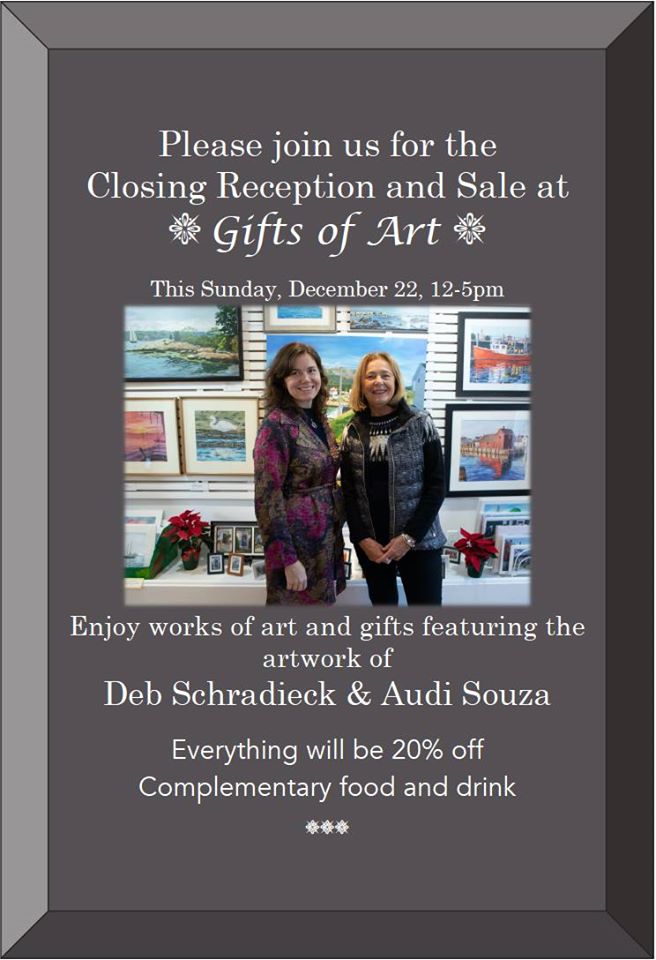 FOB fantastic artists, Deb Schradieck and Audi Souza will be having a Holiday Pop-Up Shop at 12 Old harbor Road, Bearskin Neck, Rockport, MA.
