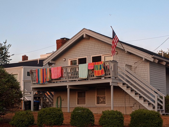 photos Jan. 13, 2024, about 4pm–four hours after high tide–when the ocean receded: some views and condition of the Long Beach seawall, front row cottages, and behind the cottages.
