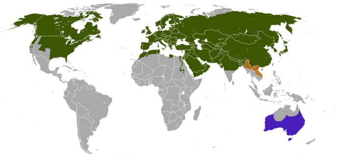 As you can see from the map, the Red Fox (Vulpes vulpes) is widely distributed across the Northern Hemisphere. Additionally, Red Fox thrive in Australia too, where they are not native and considered an invasive species.