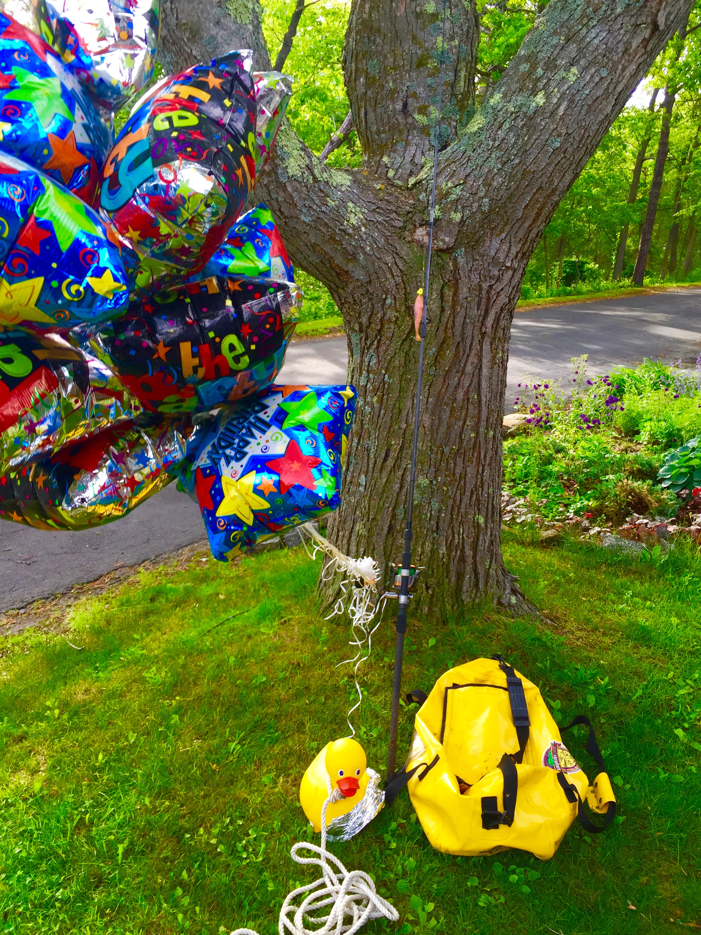 Rubber Duck was ranting this morning. Went fishing off the rocks and all we caught was a dozen helium balloons with “Happy Birthday” on them. I tried to cast out to snag them before they headed off to Lisbon, Portugal, nailed them but they slipped off the hook. A Kayak fisherman paddled over and I hooked him and he then paddled out and hooked the balloons.