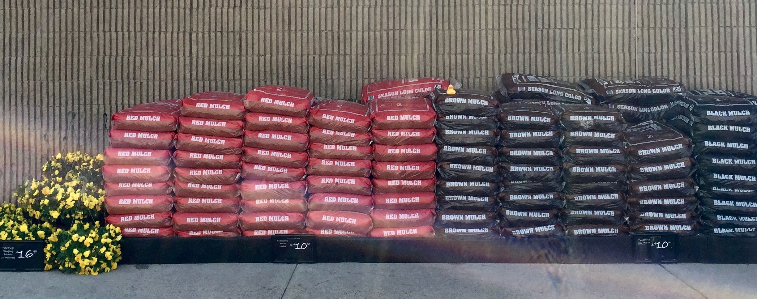 This has been a burning GMG question for years now. Joey believes that anyone who uses red mulch is a sociopath, only sane people use black mulch. This is a photo of red and black mulch. Equal piles. I will be graphing the usage of the mulch over the next two weeks.