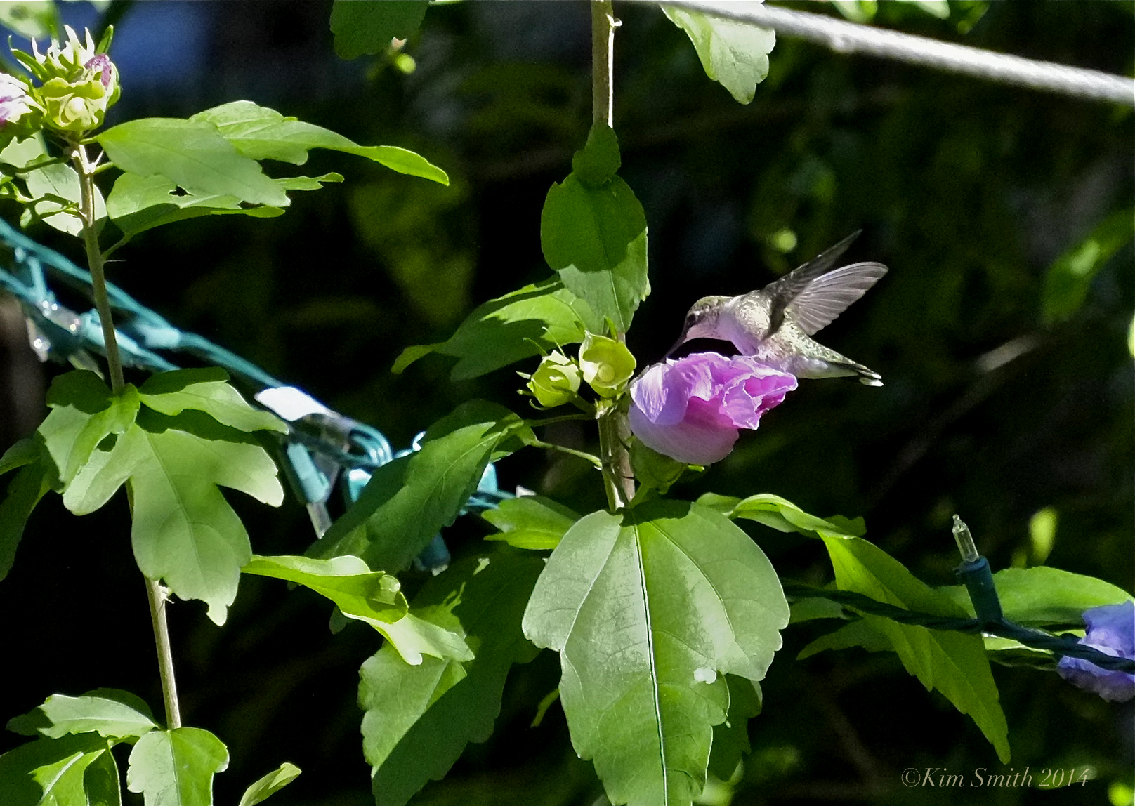 Female Ruby-throated Hummingbird in the Zinnia Patch
