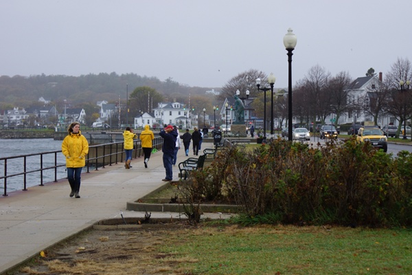 2)The original building used as a jail prior to 1889 was located on Rogers Block, take a picture of this area present day with a member in it. ANSWER: Main Street (harbor side) from Duncan to Porter