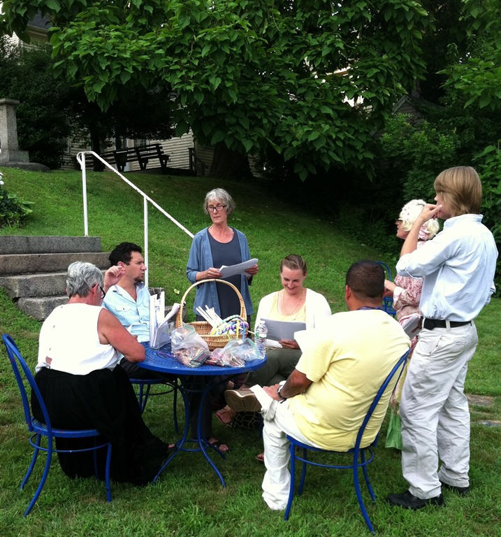 Dear Joey, Barb Silberman asked that I send along some photos from Block Party at the Sargent House Museum. This was a big night for us because this was the first time Judith Sargent Murray’s plays have returned to life after 200 years. North Shore Folklore Theatre, Co. made this possible by performing Act 5 of "the Traveller Returned" (1796). To round out the evening, we had some folks in costume, catered supper picnic boxes from Beach Gourmet, and historic lawn games. Thanks, Joey! -Kimberlee