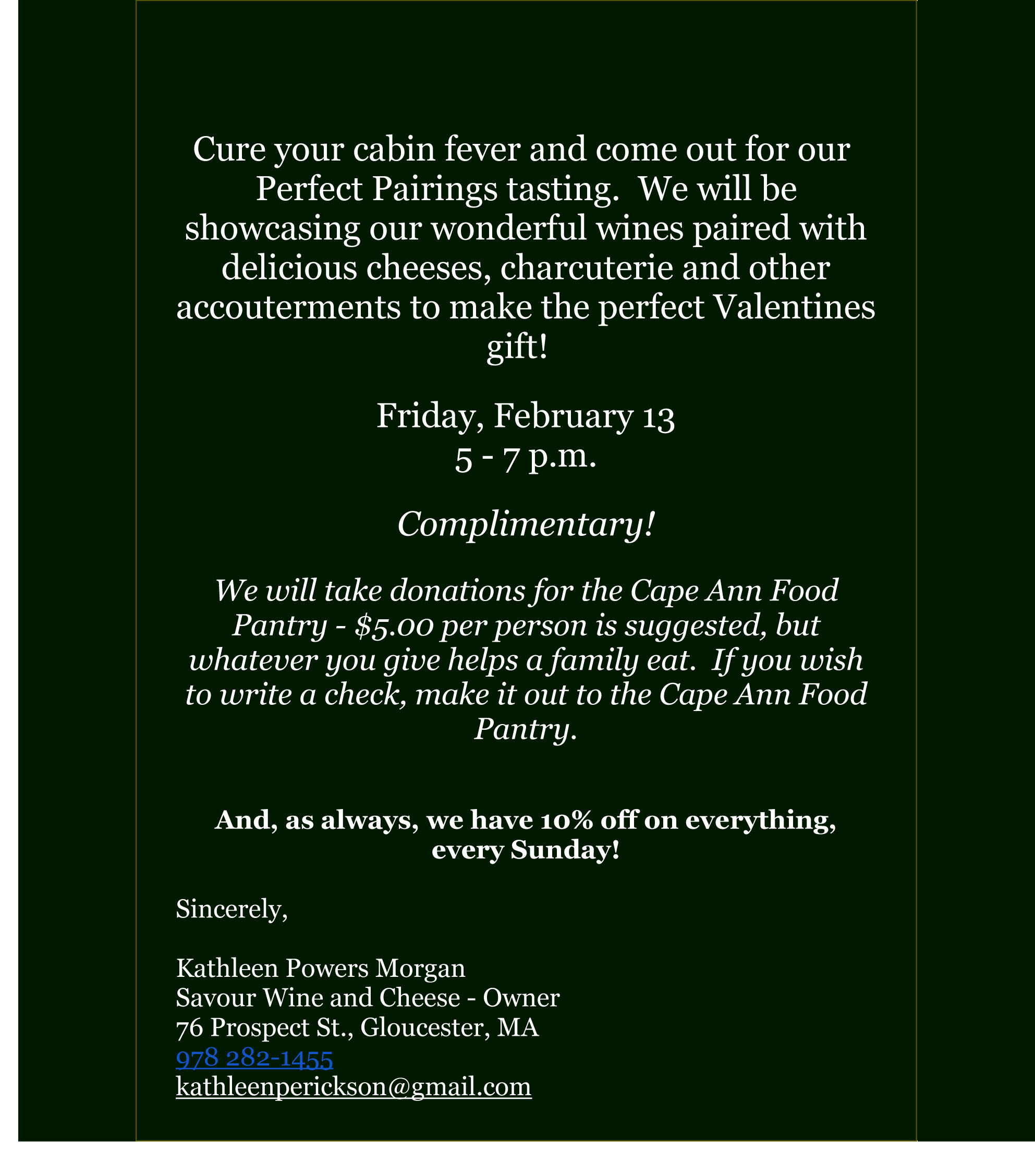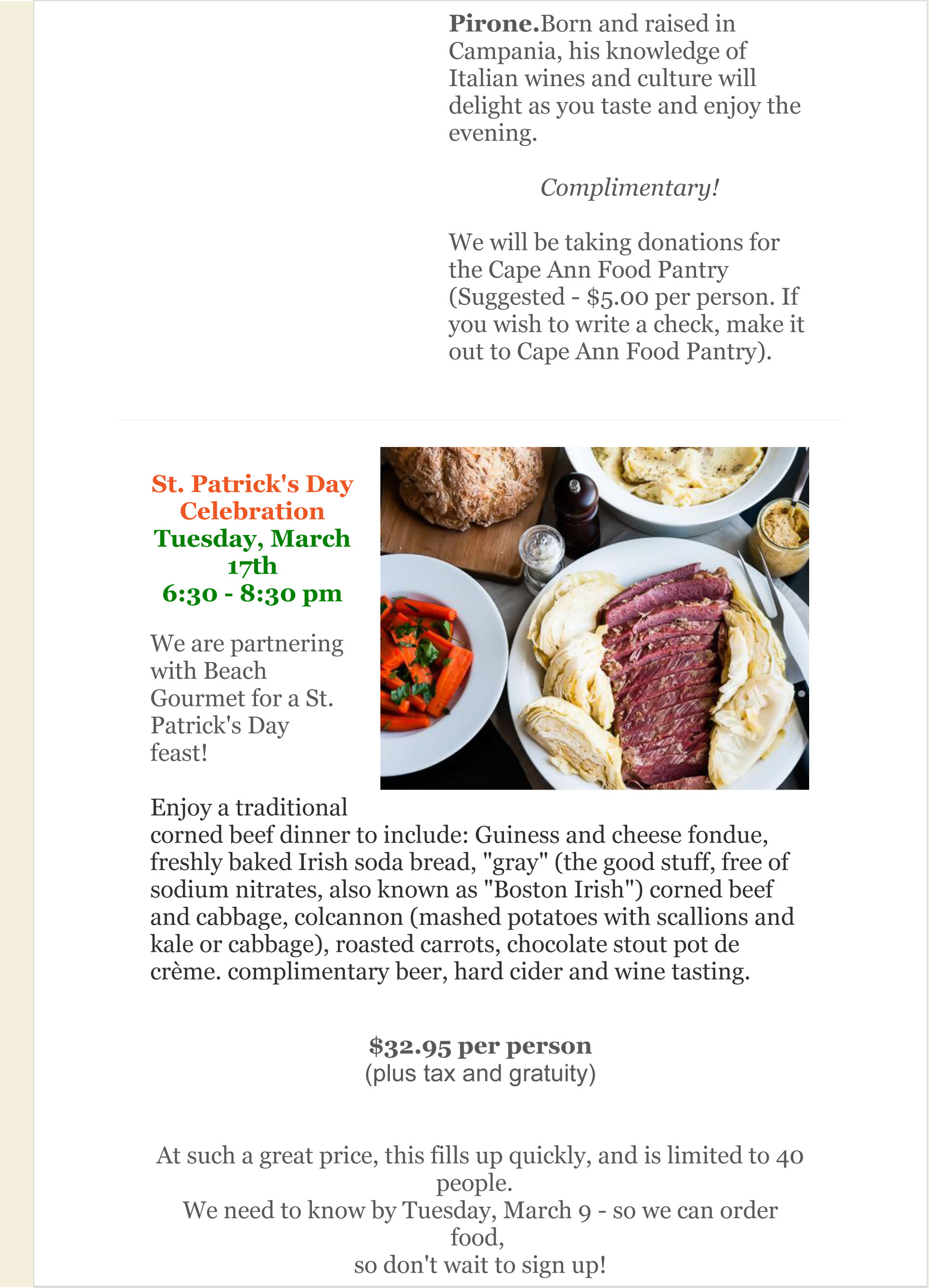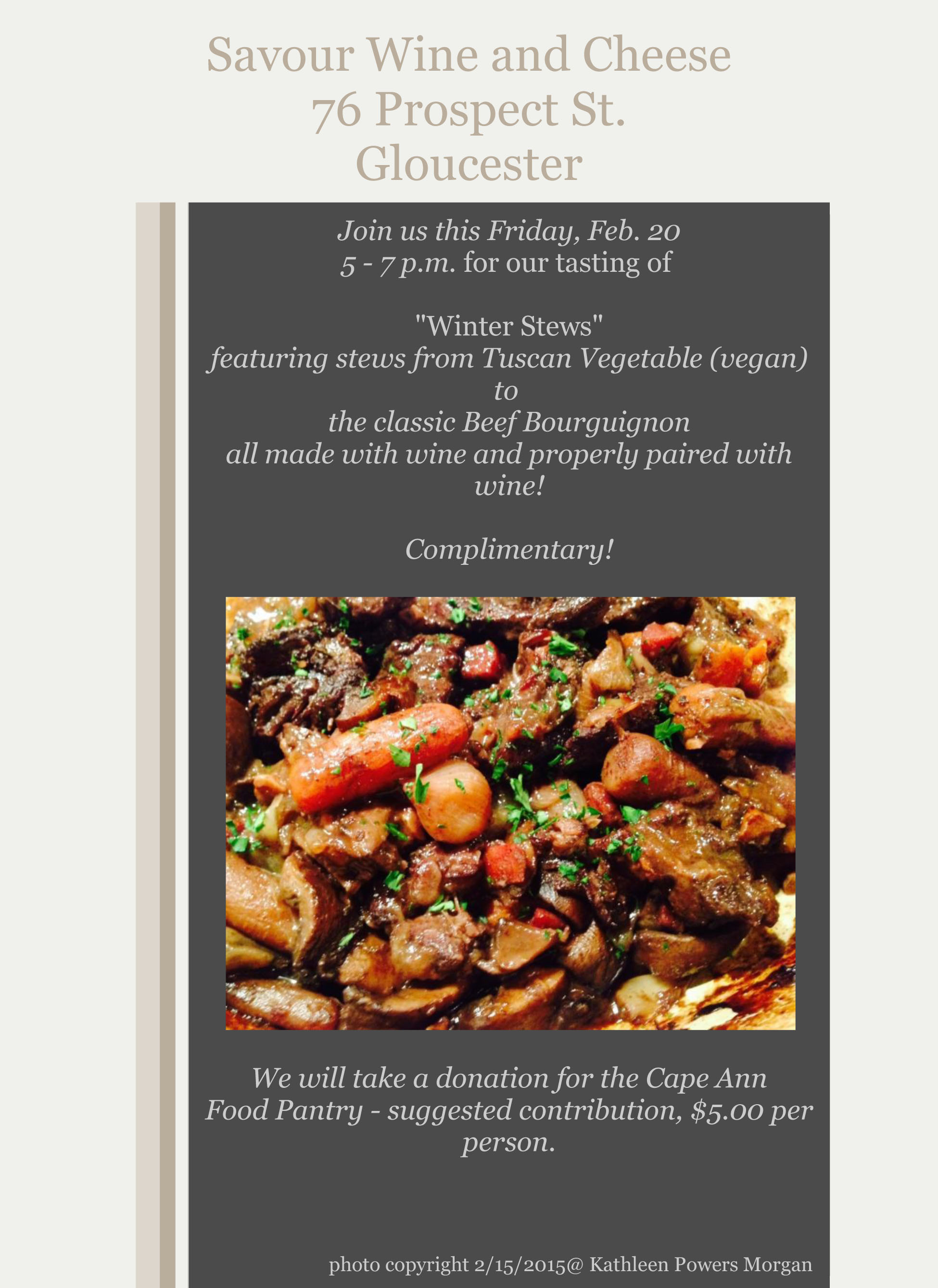 Savour Complimentary Winter Stews and Wine Tasting in Conjunction with Cape Ann Food Pantry Fundraiser Friday from 5 to 7pm