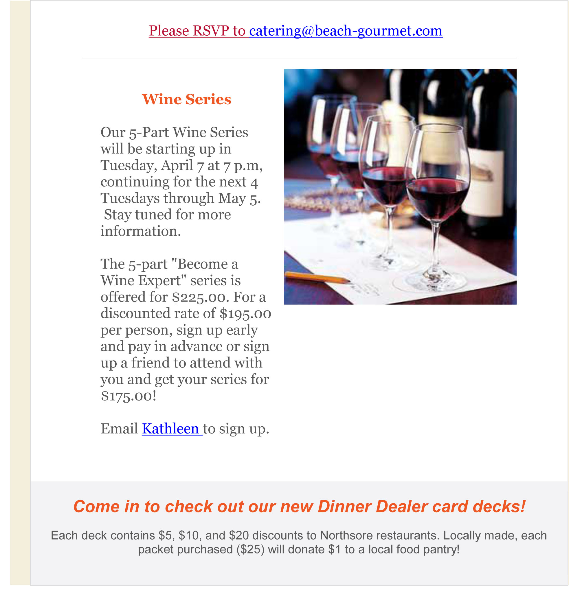 Upcoming Dinners and Classes at Savour Wine and Cheese