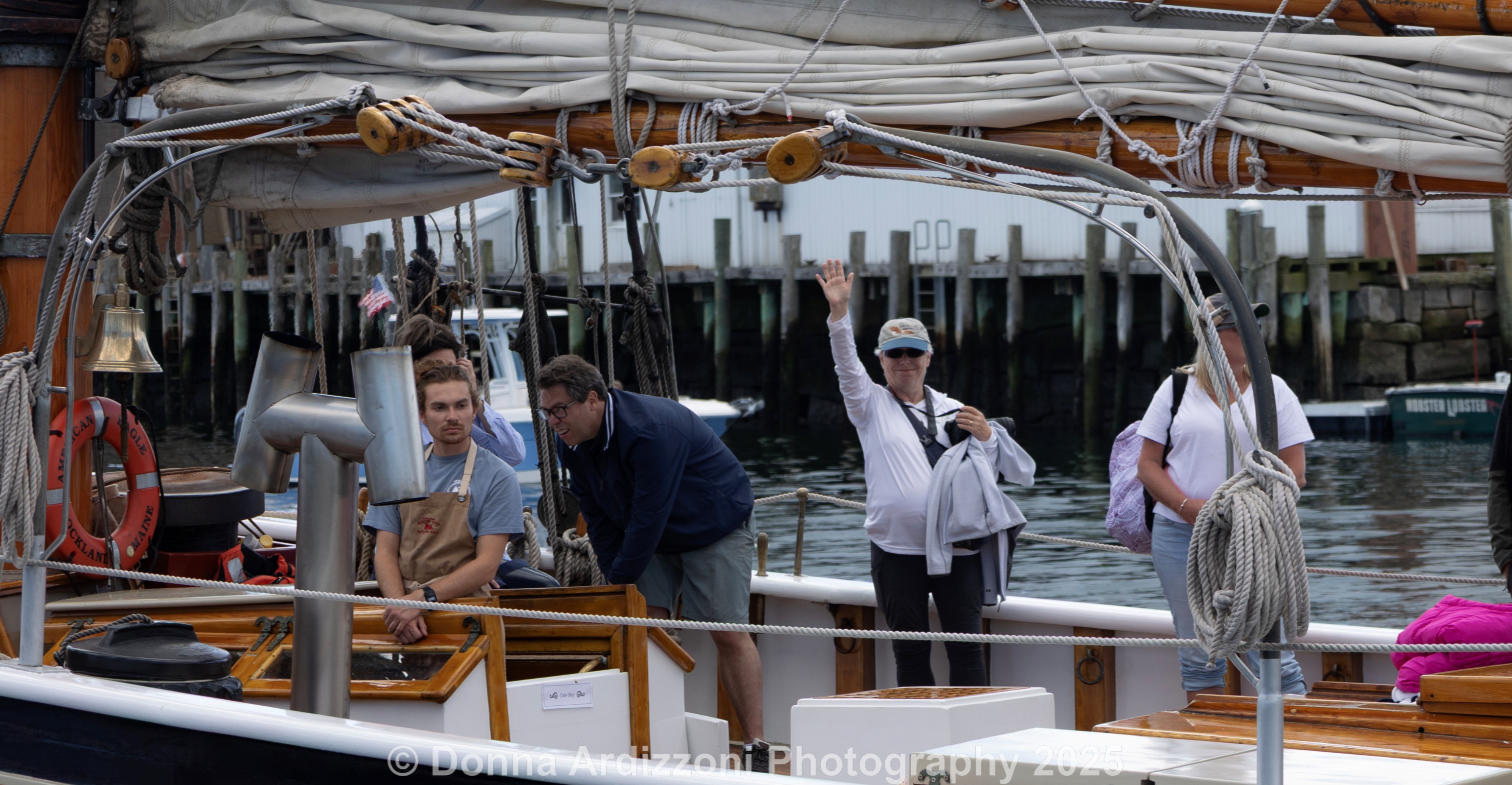 Schooner Columbia departing Gloucester Friday morning with the Captain waving bye to Charlotte 🙂