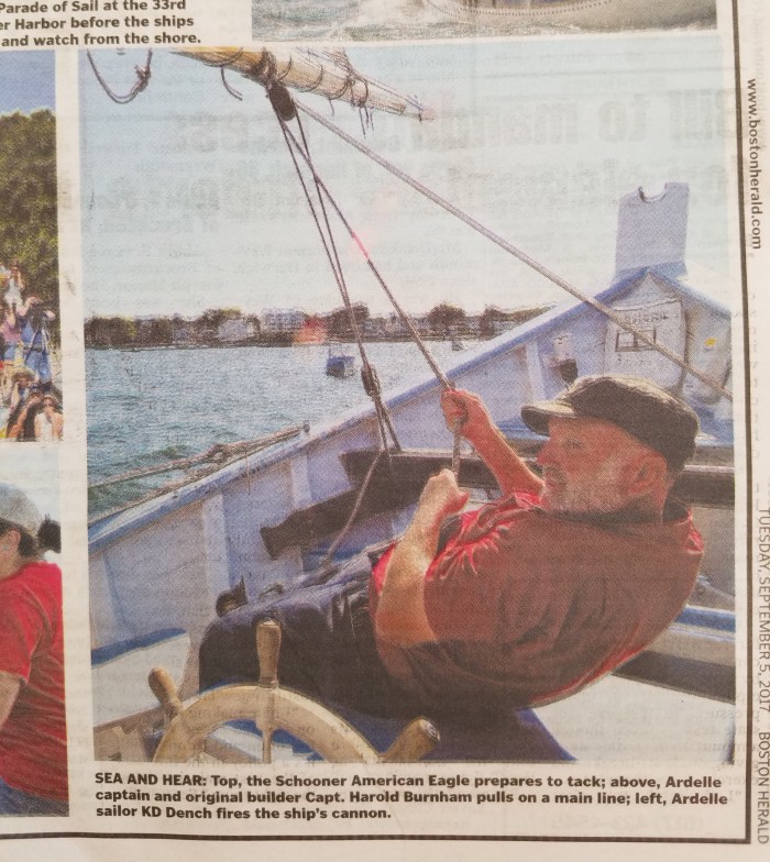 Joseph Prezioso action photos for the Boston Herald | Captain Harold Burnham, Schooner Ardelle, Stage Fort Park spectators
