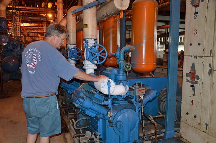 With sub-zero weather, Memhard found his workplace unusually comfortable, even as he had to deal with flooding after the Jan. 4 storm. Tidal water wreaked havoc with the machinery, but after three decades in the ice business, Memhard kept a cool head. Ice is his life — bagged ice, block ice, dry ice, crushed ice, and sculpture ice.