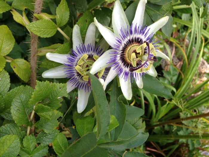 Scott’s photos are of the North American native species Passiflora incarnata. We here on Cape Ann are located in the tippy most northern range of this beautiful vine. All the rest (500 species) are more tropical. Maypop grows prolifically in the southeastern US and the foliage is the caterpillar food plant of FOUR species of butterflies: Gulf Fritillary, Julia, Zebra Longwing, and Variegated Fritillary. One of numerous common names, it is called Maypop because in the southeast the vine has a habit of popping up in May, in a location where you did not plant. Maypop spreads by root suckers. Other common name include Wild Passionflower, Apricot Vine, Old Field Apricot, Holy-Trinity Flower, Molly-pop, Passion Vine, Popapple, Granadilla, Maycock, Maracoc, Maracock, White Sarsaparilla, and Purple Passion Vine.