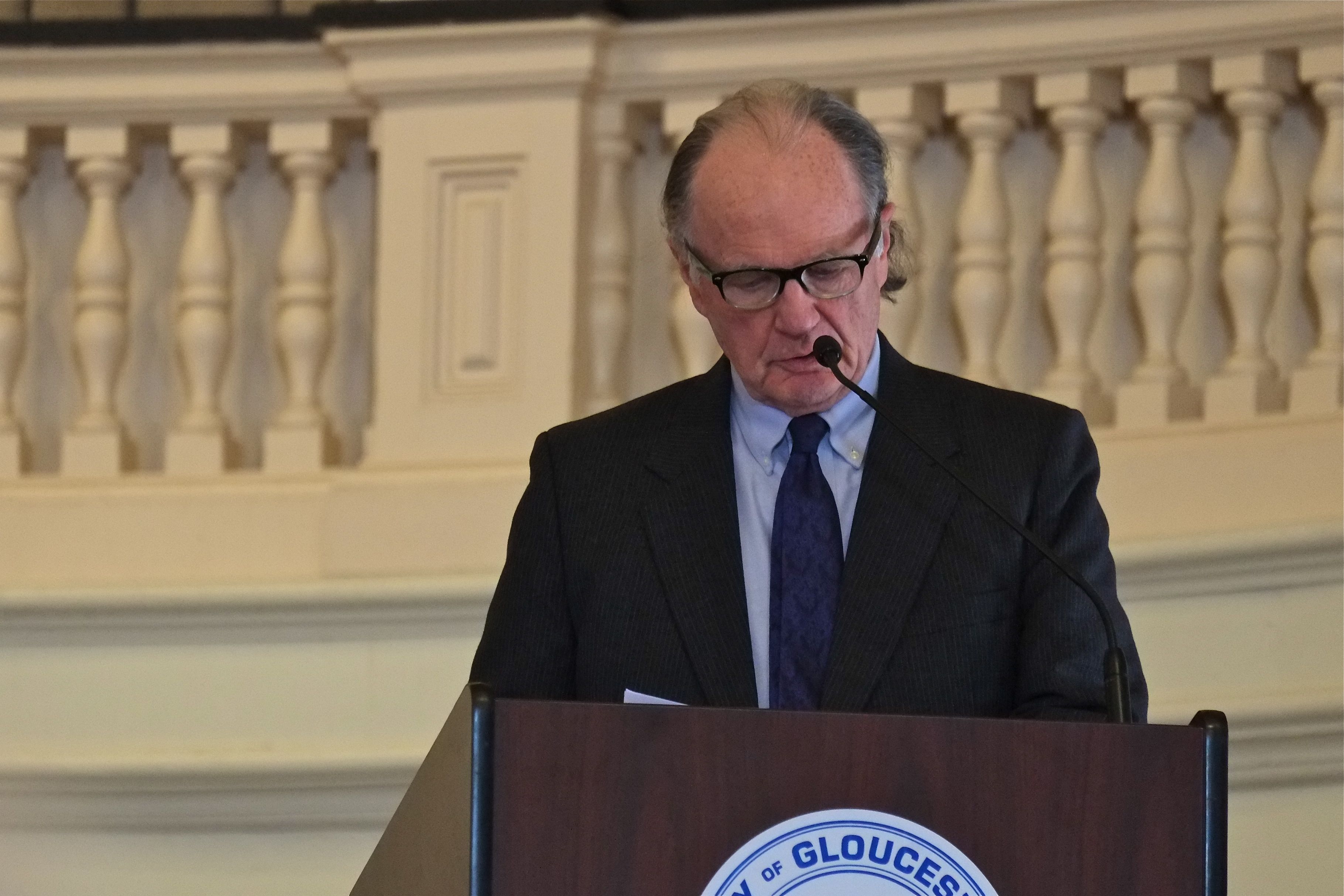 Poet Laureate John Ronan read his Gloucester-themed poem “We, Helmsman.”