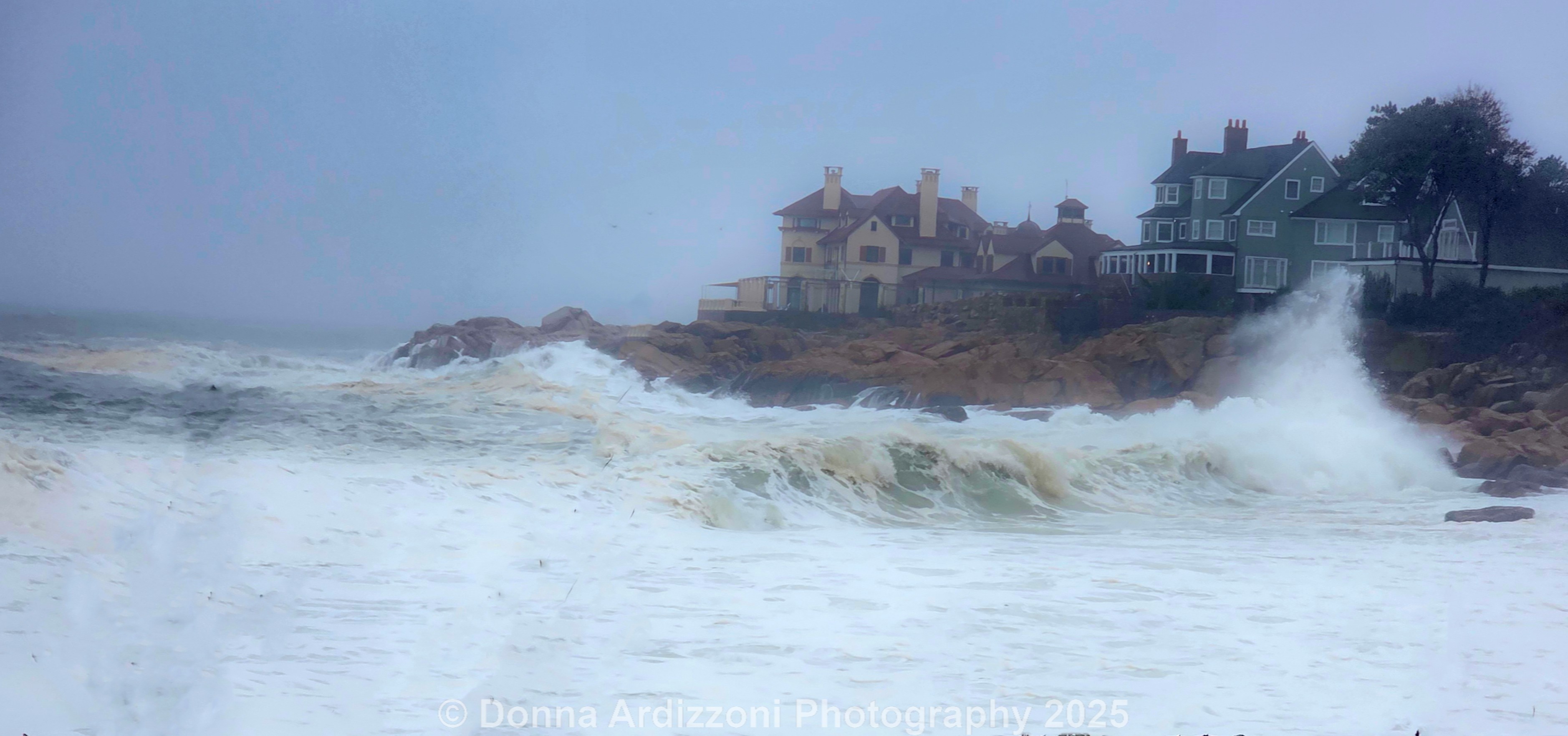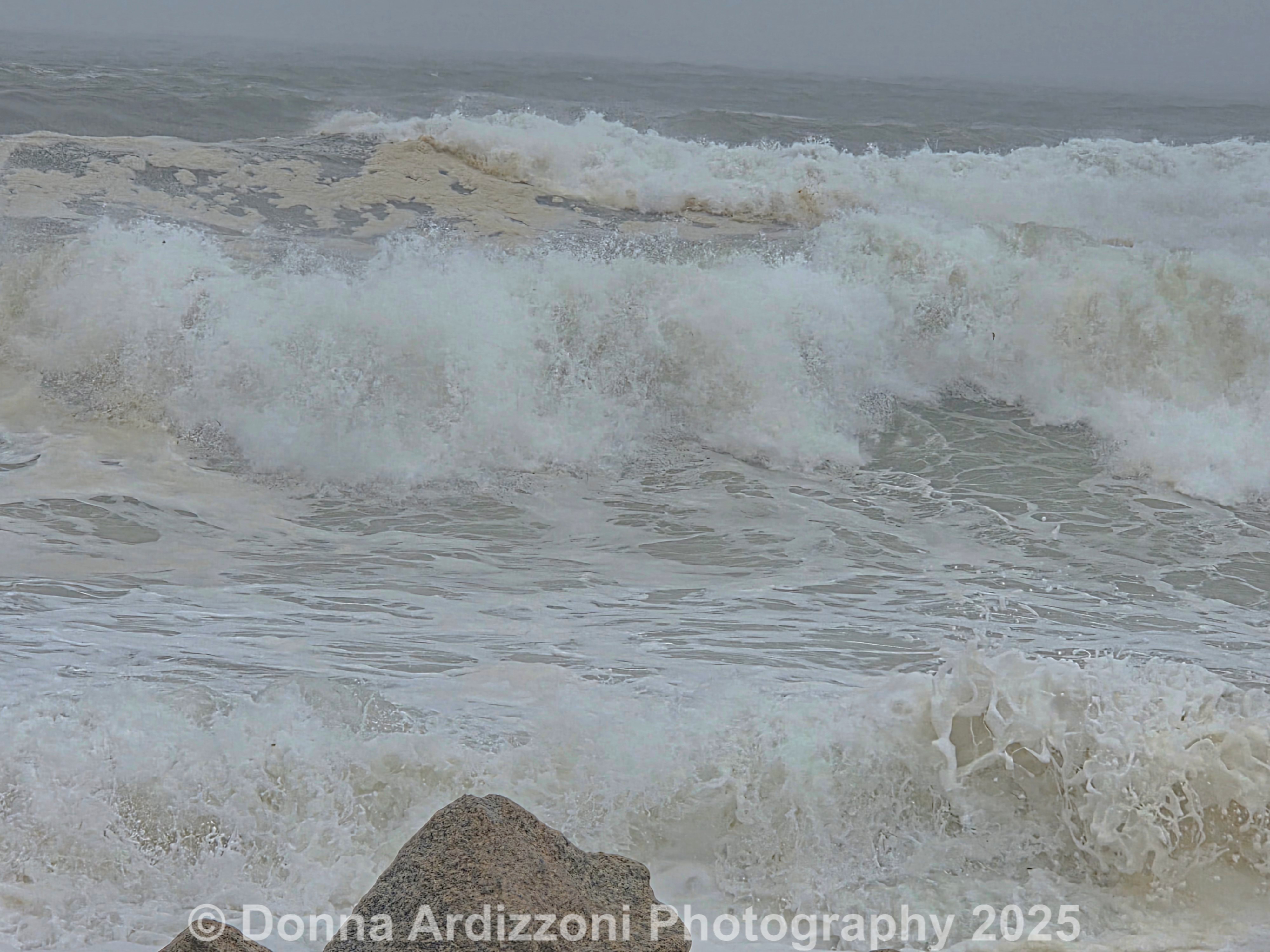 photos: Mood between Christmas and New Year’s. 12/29/2023 after the rain, sea foam ribbons streak the ocean between GHB and Twin Lights. (No foam by the surfers.) Views from Long Beach.
