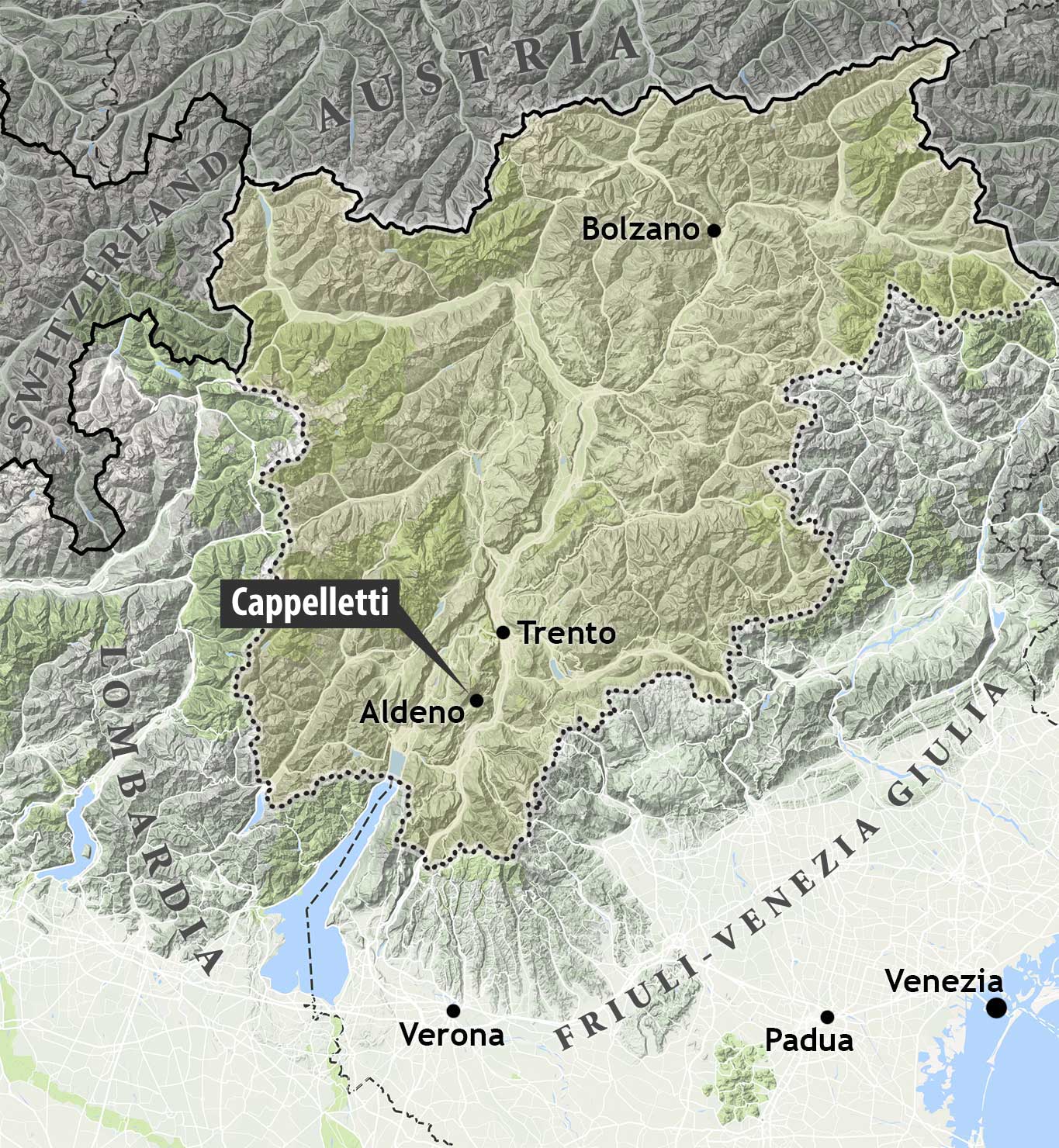 Cappelletti may be the oldest classic red bitter liqueur in production. “The producer, which goes by the full name Antica Erboristeria Cappelletti, was first established in 1909. For most of their first century they were located in the historic Piazza Fiera in the center of Trento. Today they are located 20 km south of Trento in Aldeno, surrounded by vineyards and apple orchards. As the name would suggest, the firm was and is still today focused on products from traditional herbs, roots and flowers. They achieved fame in the region for their productions of amari and aperitivi, including the classic red bitter Aperitivo Cappelletti. All production is done in house by the fourth generation of the family, Luigi and Maddalena.”