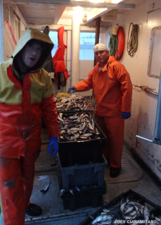 The Degelyse’s Tuffy and Sean delivering the daily catch to Captain Joe’s.