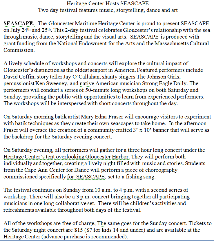 Outdoor painting and drawing classes (weather permitting) with Debbie Clarke begin Sunday April 18, 7-9am. Classes meet at the Cripple Cove Parking Lot across from Zeke’s. arrive by 6:30 to set-up. fee $25. all levels encouraged from newbies to pros to register contact me via email: elli01930@yahoo.comall painting and drawing media welcome, sorry, no watercolor.
