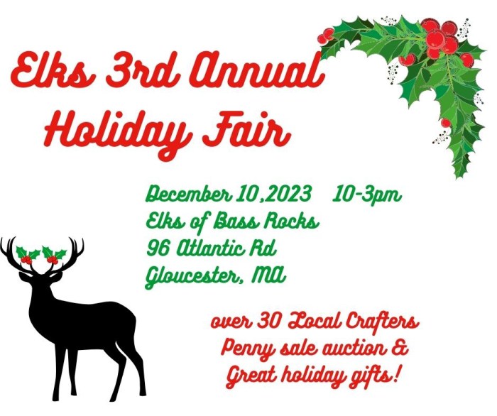 Thank you for shopping local and see you at the Elks, Gloucester. See you there