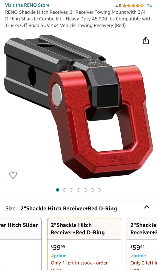 RENO Shackle Hitch Receiver, 2″ Receiver Towing Mount with 3/4″ D-Ring Shackle Combo kit – Heavy Duty 45,000 lbs Compatible with Trucks Off Road SUV 4×4 Vehicle Towing Recovery (Red)