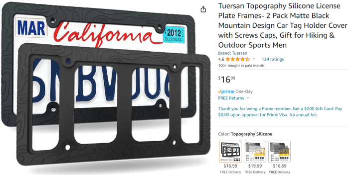 Tuersan Topography Silicone License Plate Frames- 2 Pack Matte Black Mountain Design Car Tag Holder Cover with Screws Caps, Gift for Hiking & Outdoor Sports Men