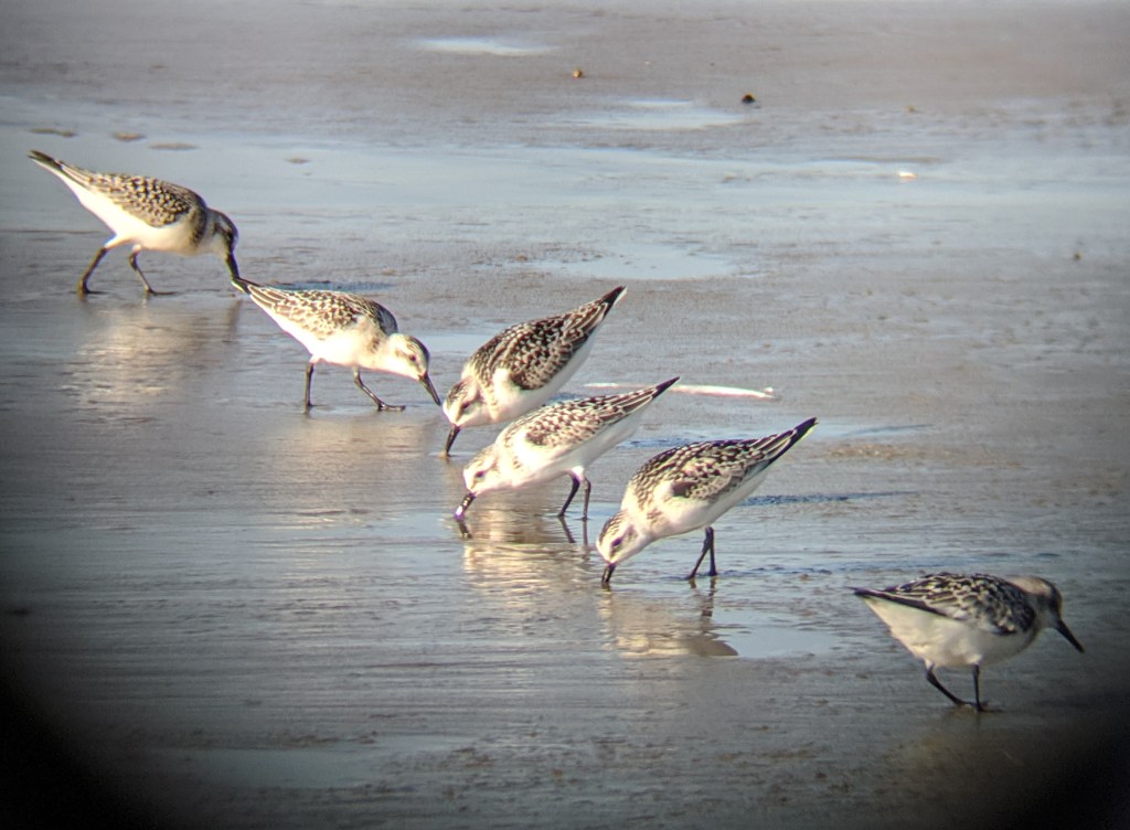 Below L-R: Sanderlings, semipalmated sandpipers, and semipalmated plover visiting 2020