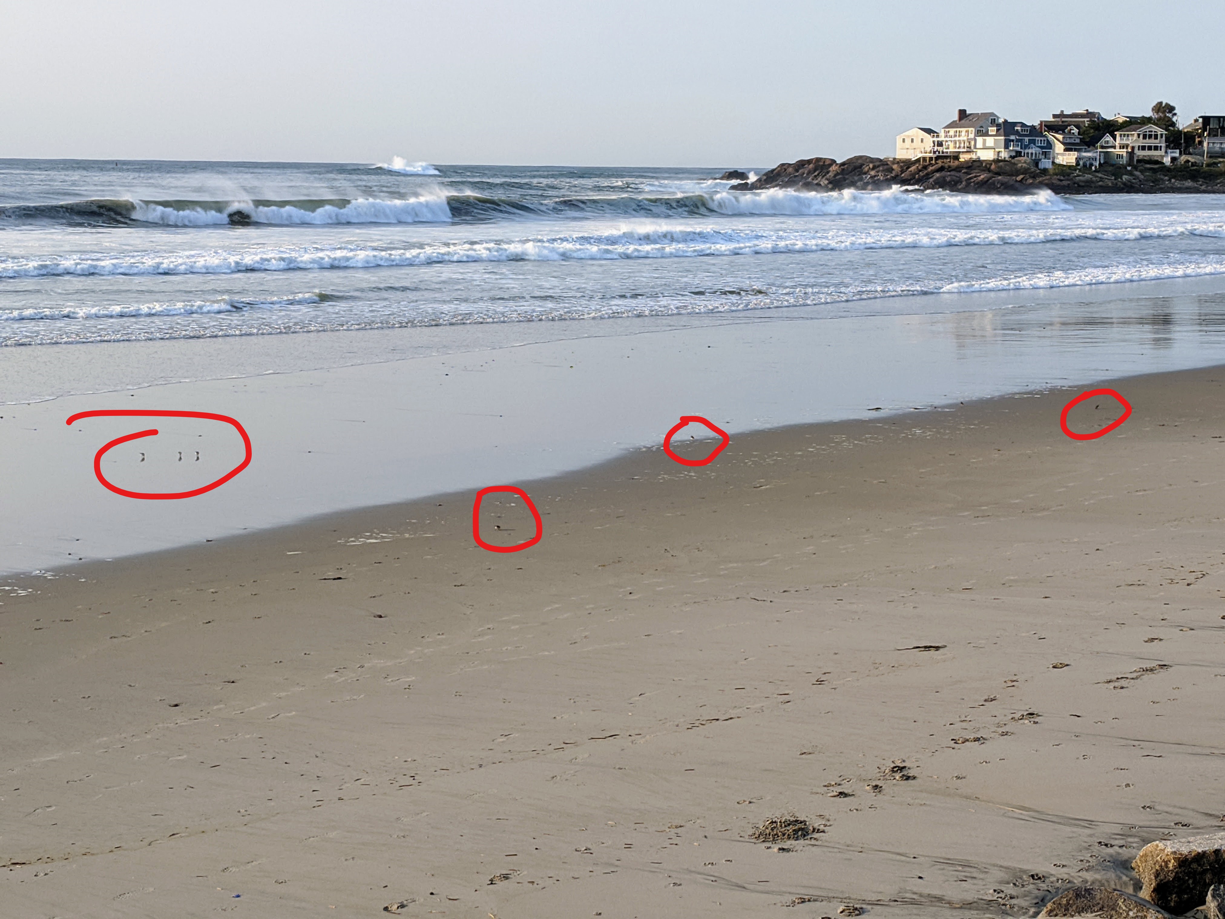 Daily I have been checking and this afternoon we were overjoyed to see two foraging at low tide at Good Harbor Beach. They were super hungry, looking for food non-stop at the sand bar and in the water.