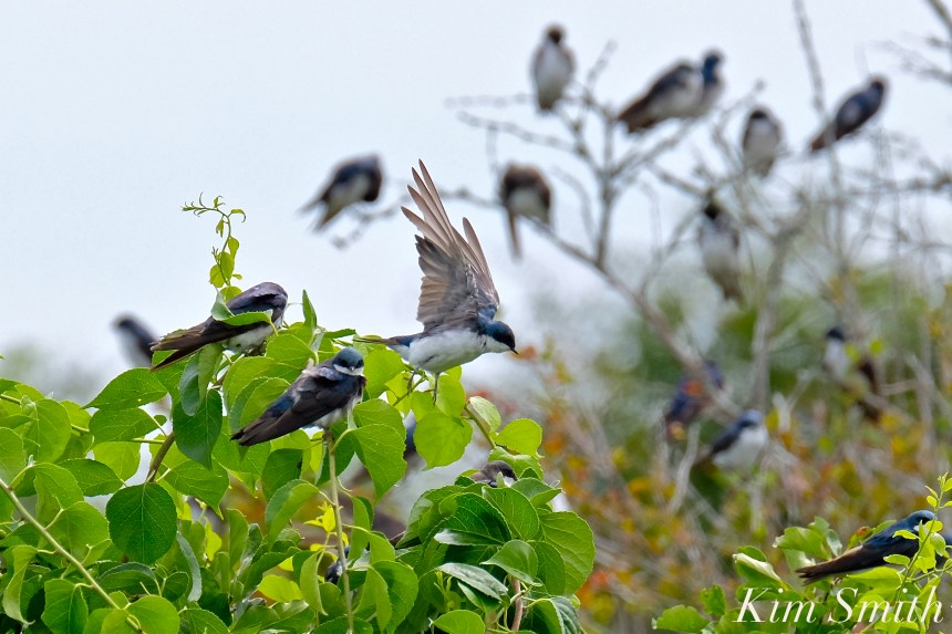 Tree Swallows massing, foraging in dunes rich with insects and berries.