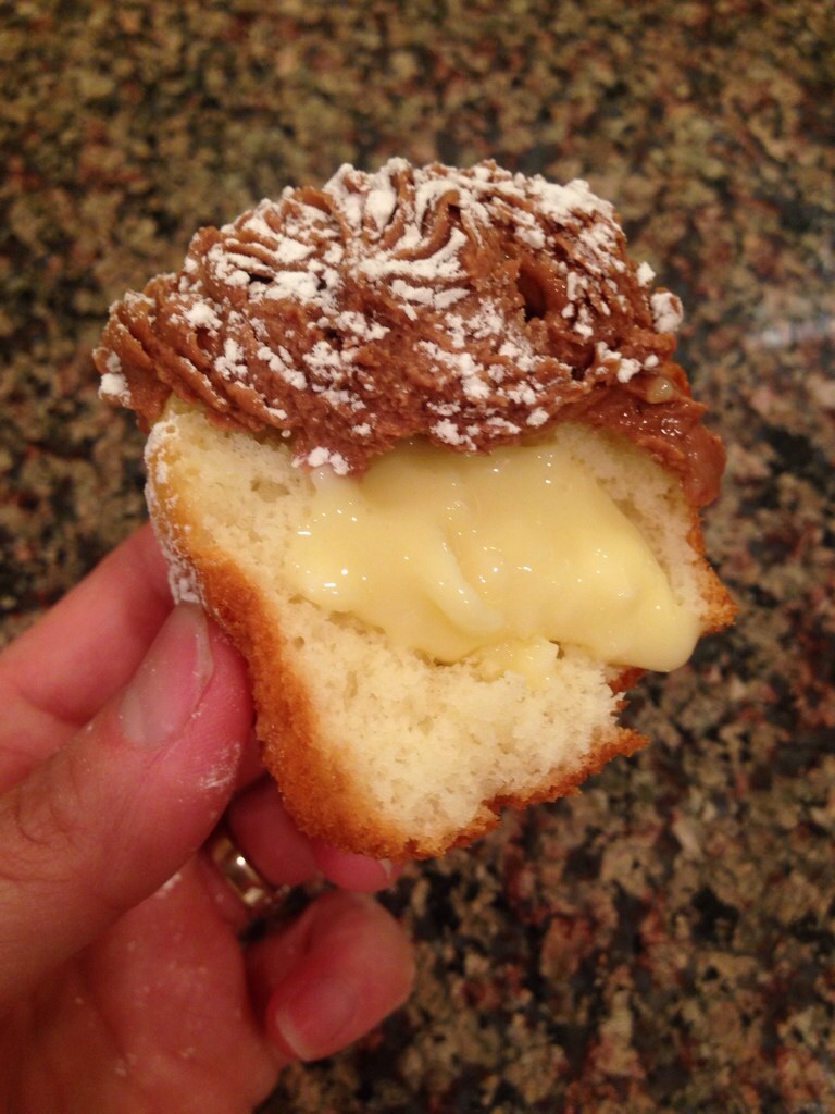 Sista Felicia’s Homemade “St. Joseph Zeppole” filled with both traditional vanilla custard, and sweetened ricotta topped with cherries and confectioners sugar!