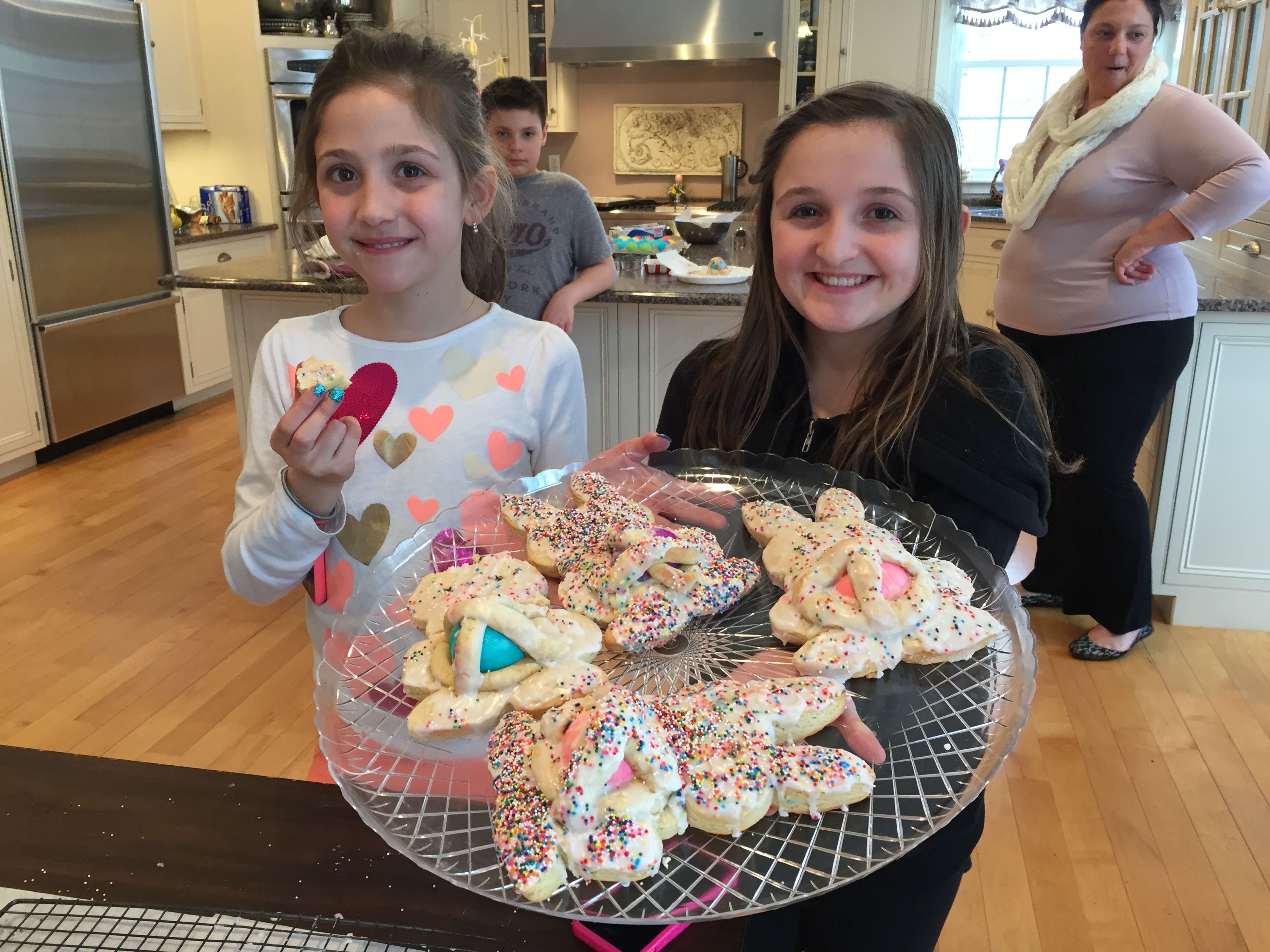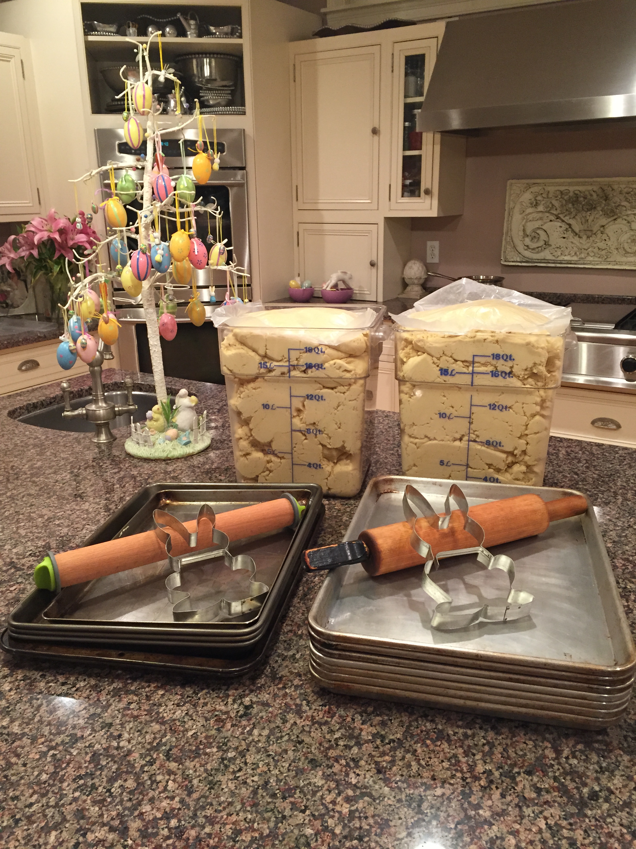 Ā I quickly turned yesterdayās frustrating morning of “sorry they are not for sale” into a fantastic afternoon, the moment I decide to whip up another massive batch of cookie dough,( my Italian Cookie Dough recipe is included below) and extended an open invitation “treating” the children of my family and friends with an opportunity comeĀ to my kitchen and bakeĀ a Bunny Cookie with me! Ā Within hours an impromptu afternoon of baking Eater Bunny Cookies with all kids in and around my life was well underway! The afternoon couldnāt have been more perfect! As the word got out, three waves of kids between 3 and 6pm found their way over to my kitchen, to craft Easter Bunny Cookies, followed by daughter Amanda, Columbia tennis exchange student Laura, and mother Pat,who latter in the evening after tennis academy training and work made the 4th and final wave of bunny cookie makers ending yesterday’s baking extravaganza! Ā