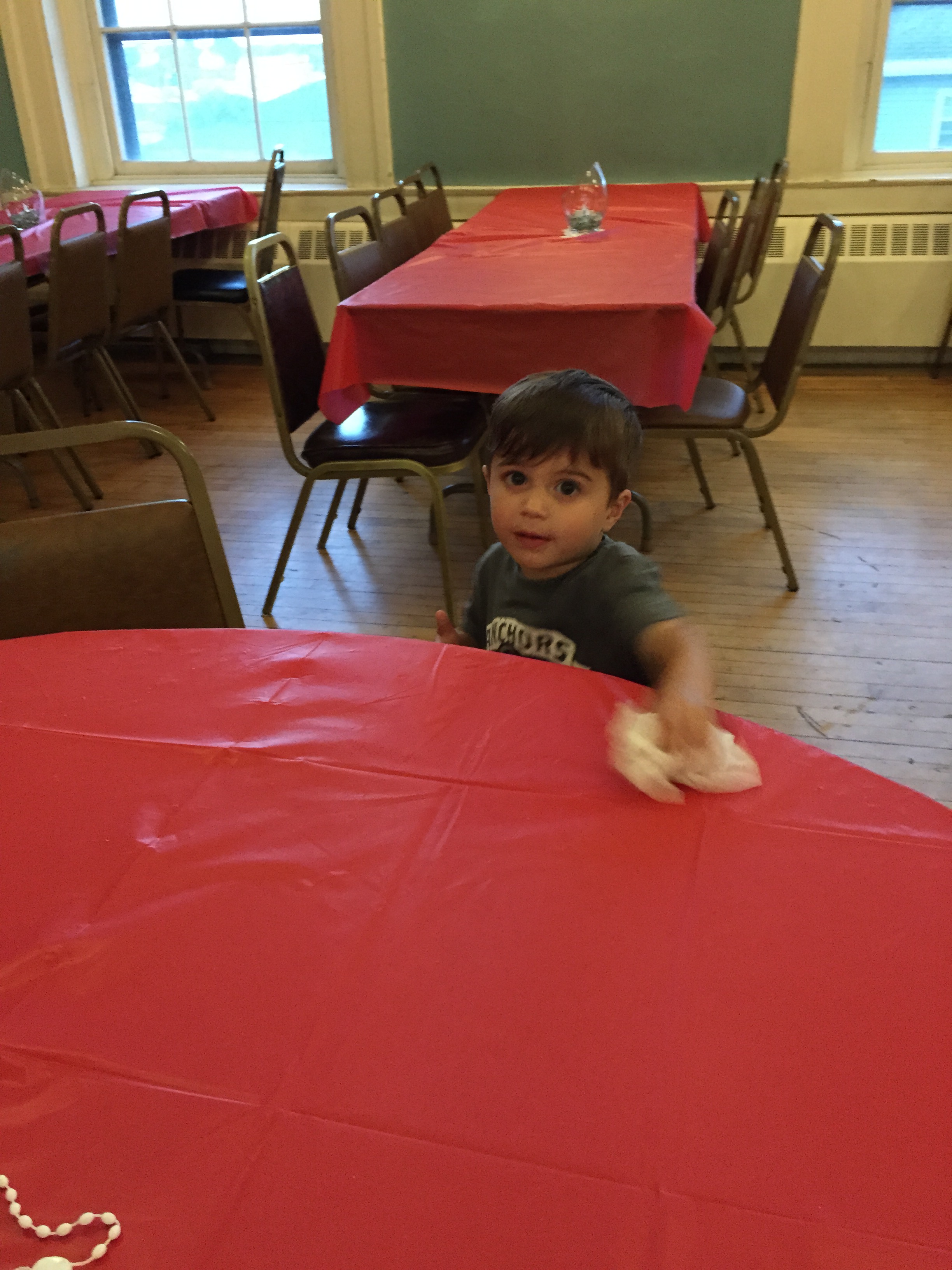 Dante HoldingĀ having fun with Al MillefoglieĀ during last night’s NovenaĀ clean up!