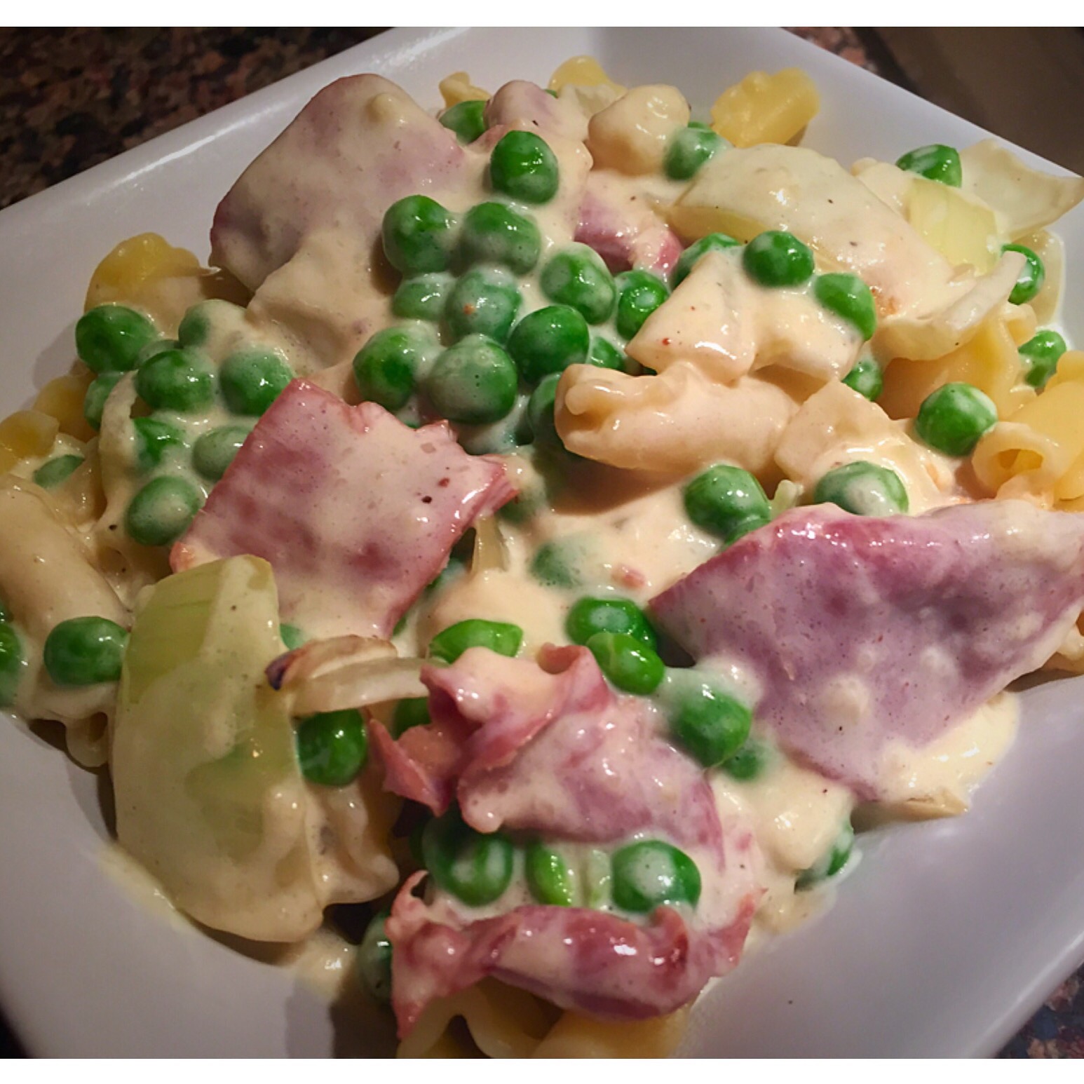 Ā Pasta with Peas & Hot Ham is fast andĀ easy to prepare and only requires a few key ingredients.Ā This pasta dish is traditionally served for lunch or dinner as main course or side dish,Ā but I think itĀ makes a perfect late night mealĀ for theĀ fall and winter months.Ā Ā Trust me you’ll have no trouble warming up orĀ sleeping after eating a bowl of this heavenlyĀ creamy pasta dish late night!Ā It’s one of our families most favoriteĀ “Italian Comfort Food” dishes!Ā