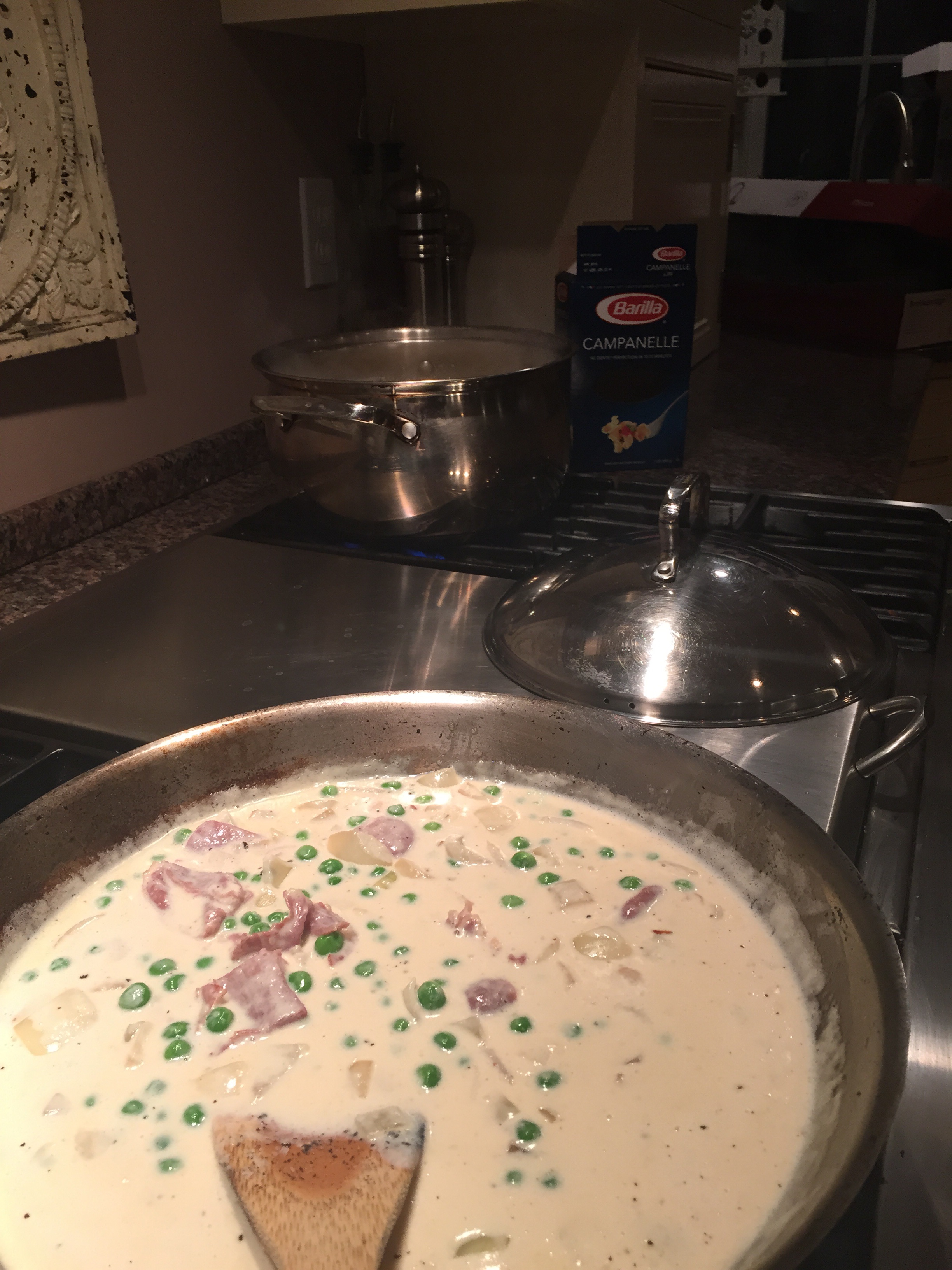 This pastĀ holiday weekend was spent embracing opportunities to experienceĀ “Real Campus Life” whileĀ touring colleges with our twins.Ā After three days ofĀ living off fast food, Starbucks Coffee,Ā and a few campus dining hall delights, a “realĀ meal”Ā was much need when we arrived home late last night. The last half hour of our road trip back home felt like tenĀ as we discussed what meal I could pull together the fastest with ingredients I knew I hadĀ on hand at home.Ā After rattling off several optionsĀ to please everyone’s starving bellies and picky pallets, “Pasta withĀ Peas & Hot Ham” was unanimously requested,Ā made andĀ on the table before the boys finished emptying bags and luggage from the truck!Ā