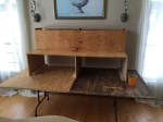 The 2015 altar is officially under construction! Yesterday, St. Barry assembled our families St. Joseph Altar, while my dear friend Tanya Frost and carefully removed dozens of Saints and Statues from the “vidina,”China cabinet, for their annual bath, polishing, and inspection for repairs, in preparation of todays traditional decorating  the altar gathering at my home with friends and family!
