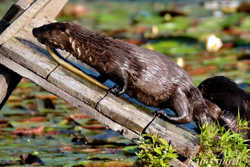 First one pup catches an eel and brings it to the old wooden perch, which is also the otters favorite place to play hide and seek with each other.