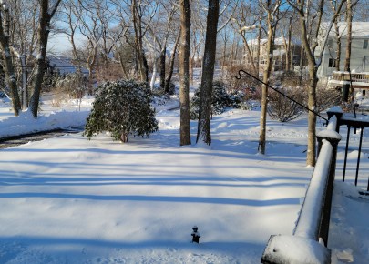 My friend Donna Ardizoni reports that Main Street, in Downtown Gloucester, now has sidewalks clear of snow. Tomorrow, Monday February 2nd, we’ll have plenty more of the white stuff. If the oncology clinic at Addison Gilbert Hospital is closed, I’ll stay home. Now that I’ve had some practice with my cane cleats, I feel more comfortable on paths shoveled thru the snow.