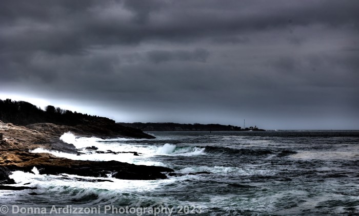 First winter snow a dusting on the coast and rainbow spray in the surf #GloucesterMA
