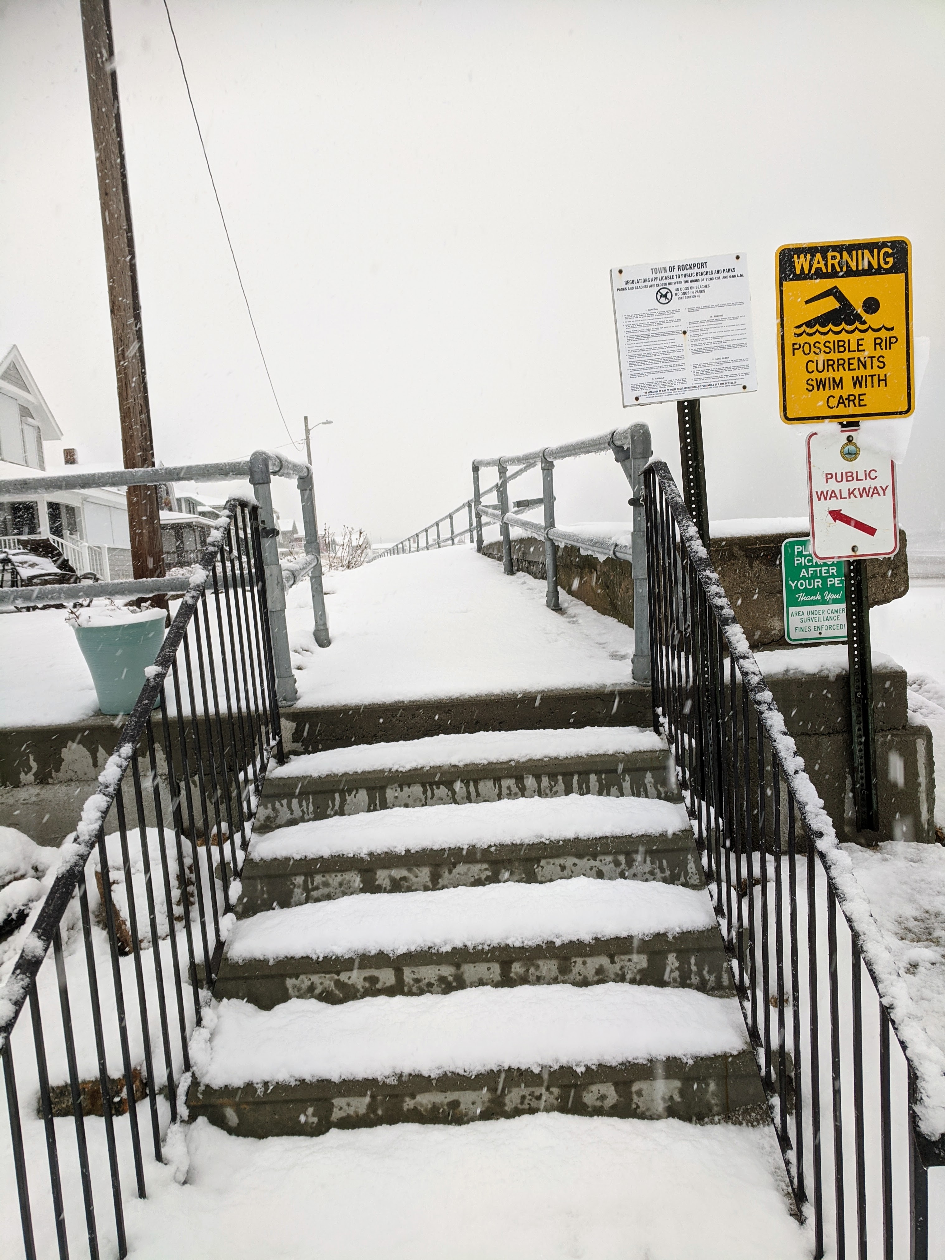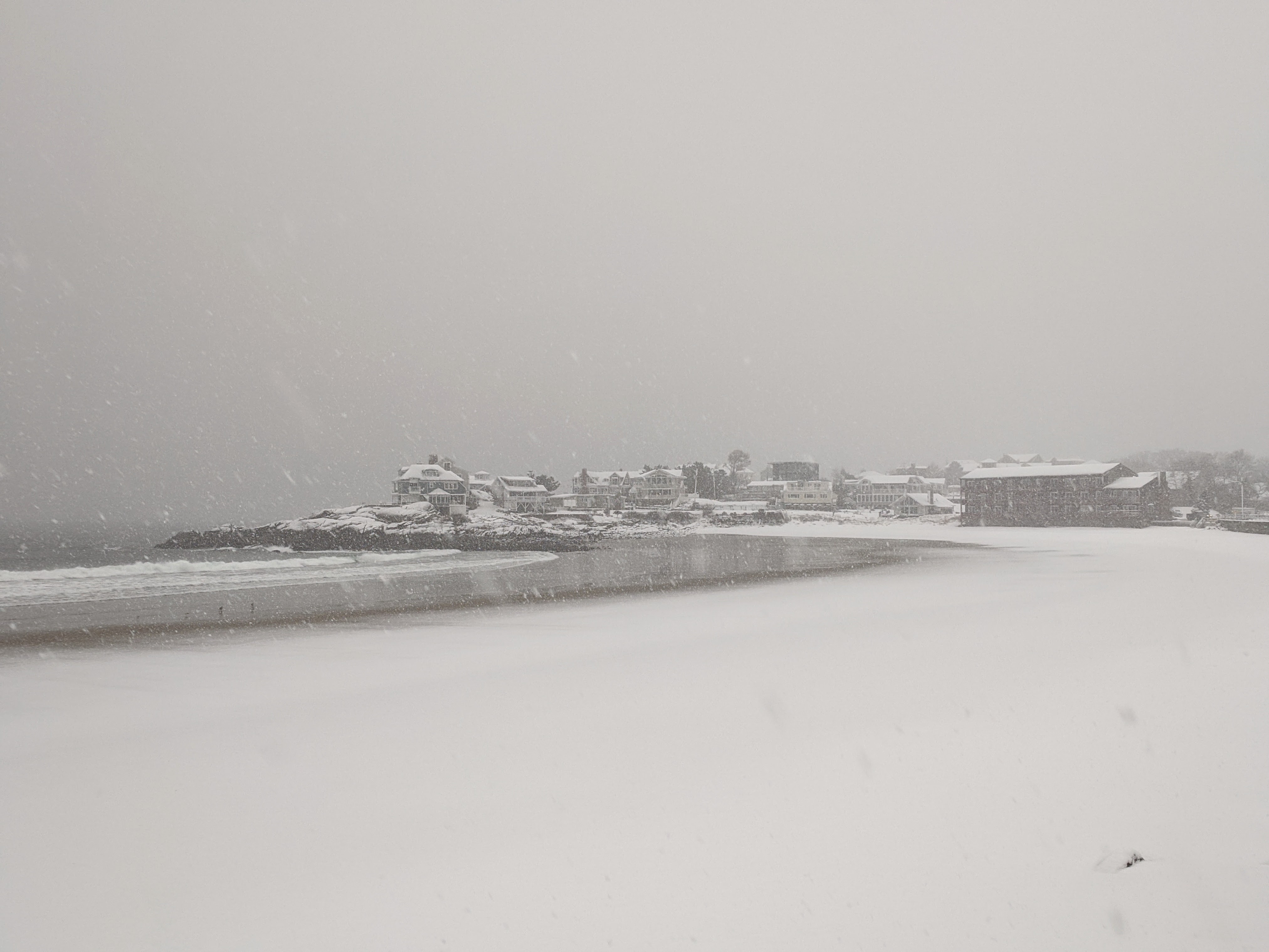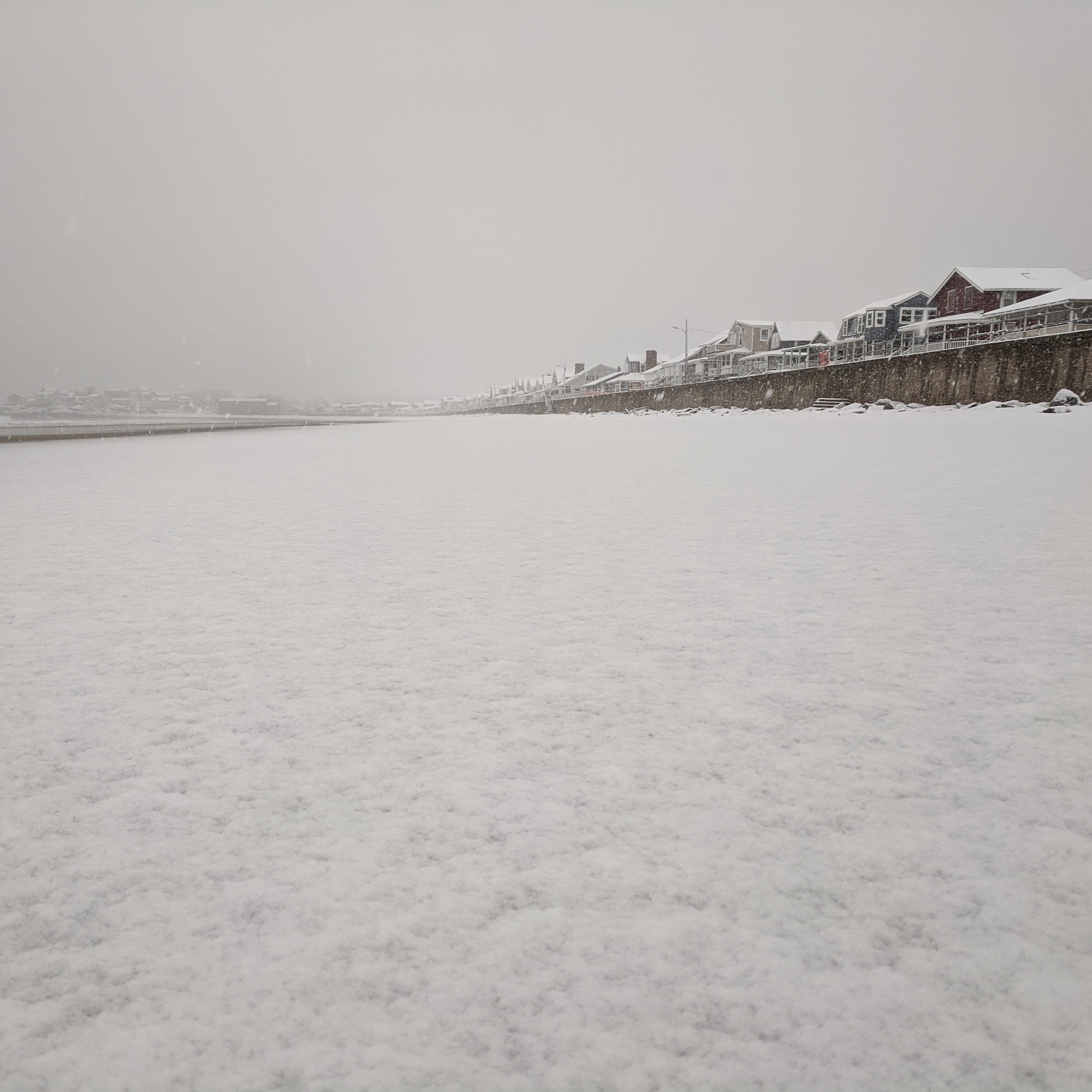 photos- views Long Beach Gloucester-Rockport. 9AM- with temperature hovering 32 mix snow and rain