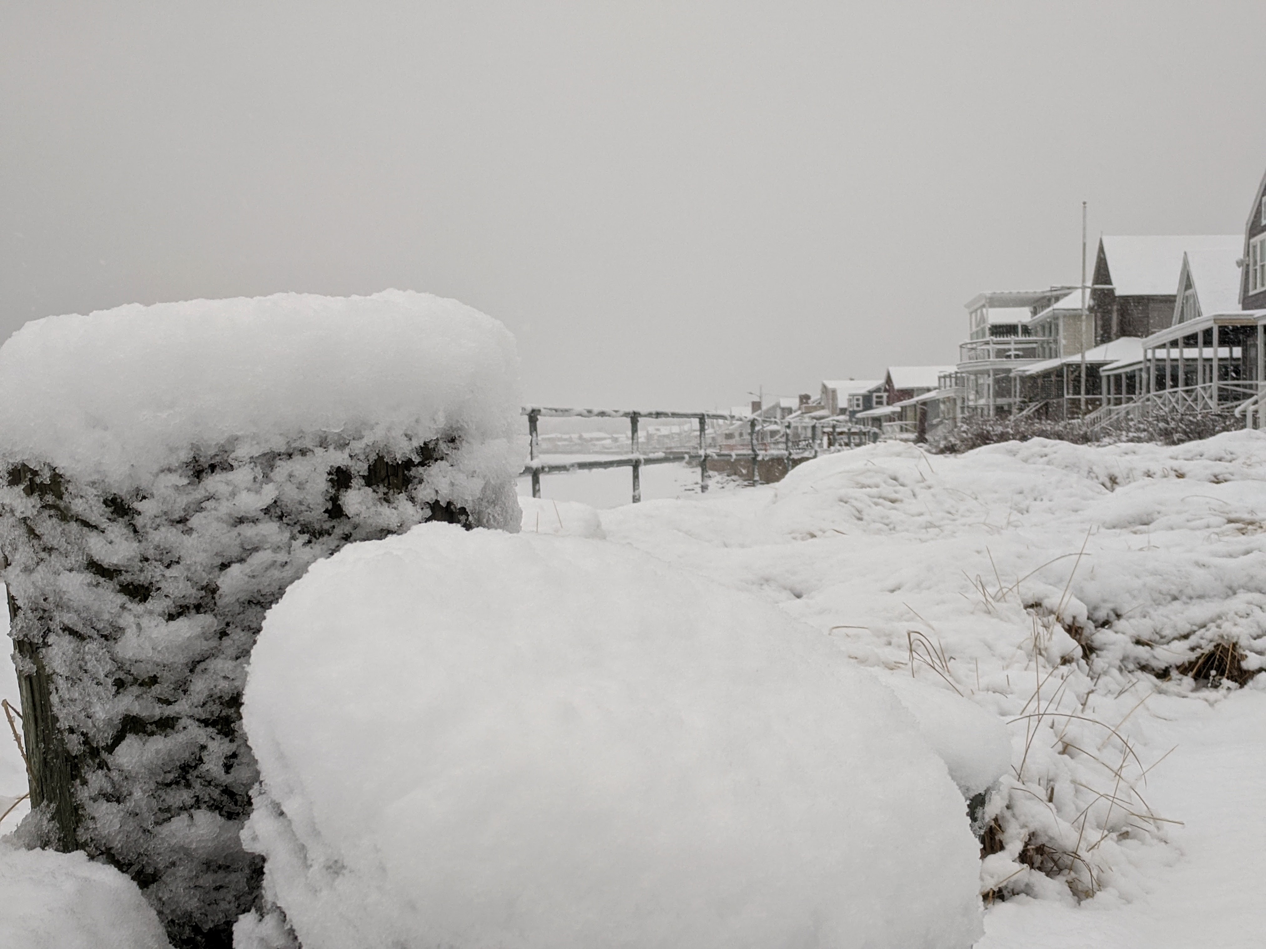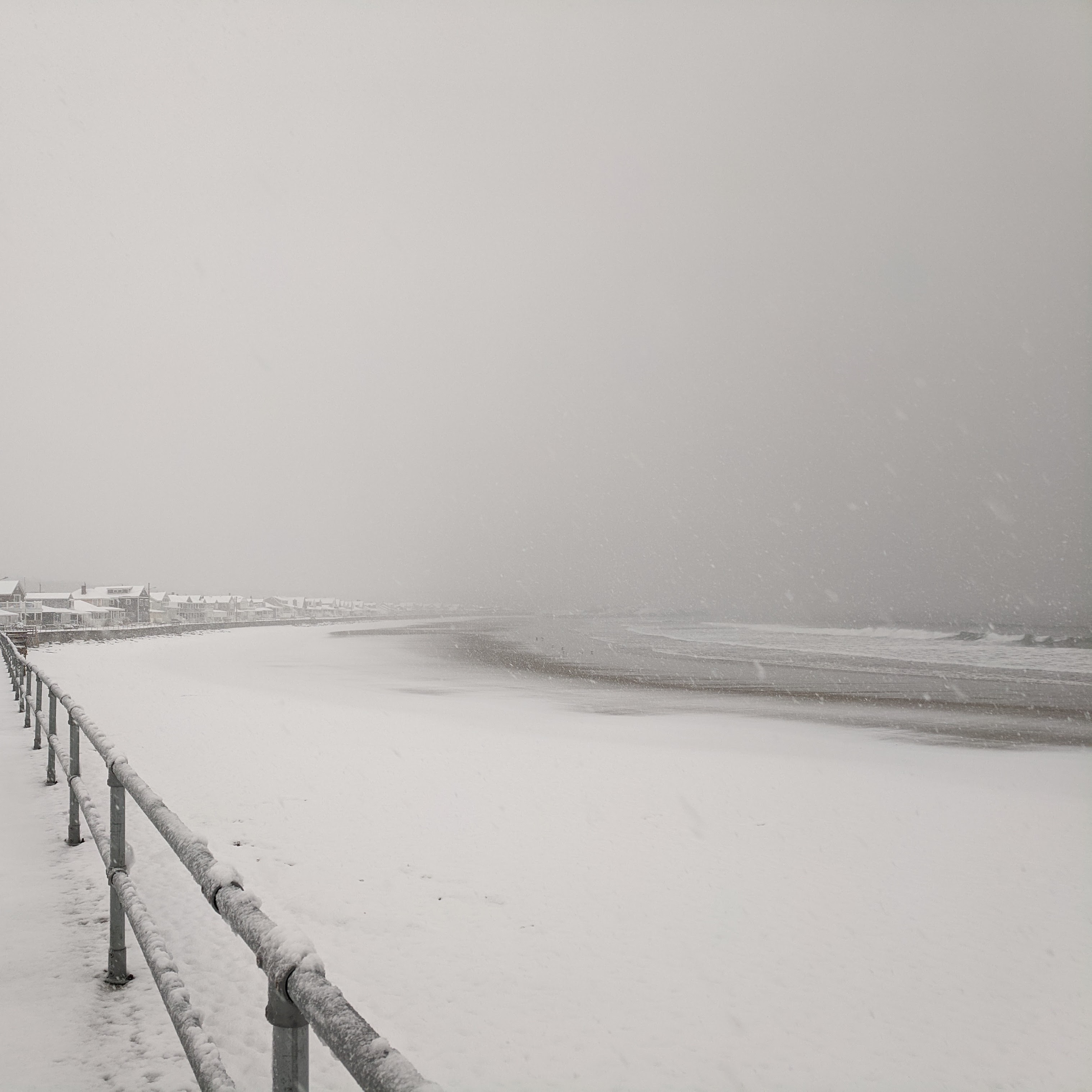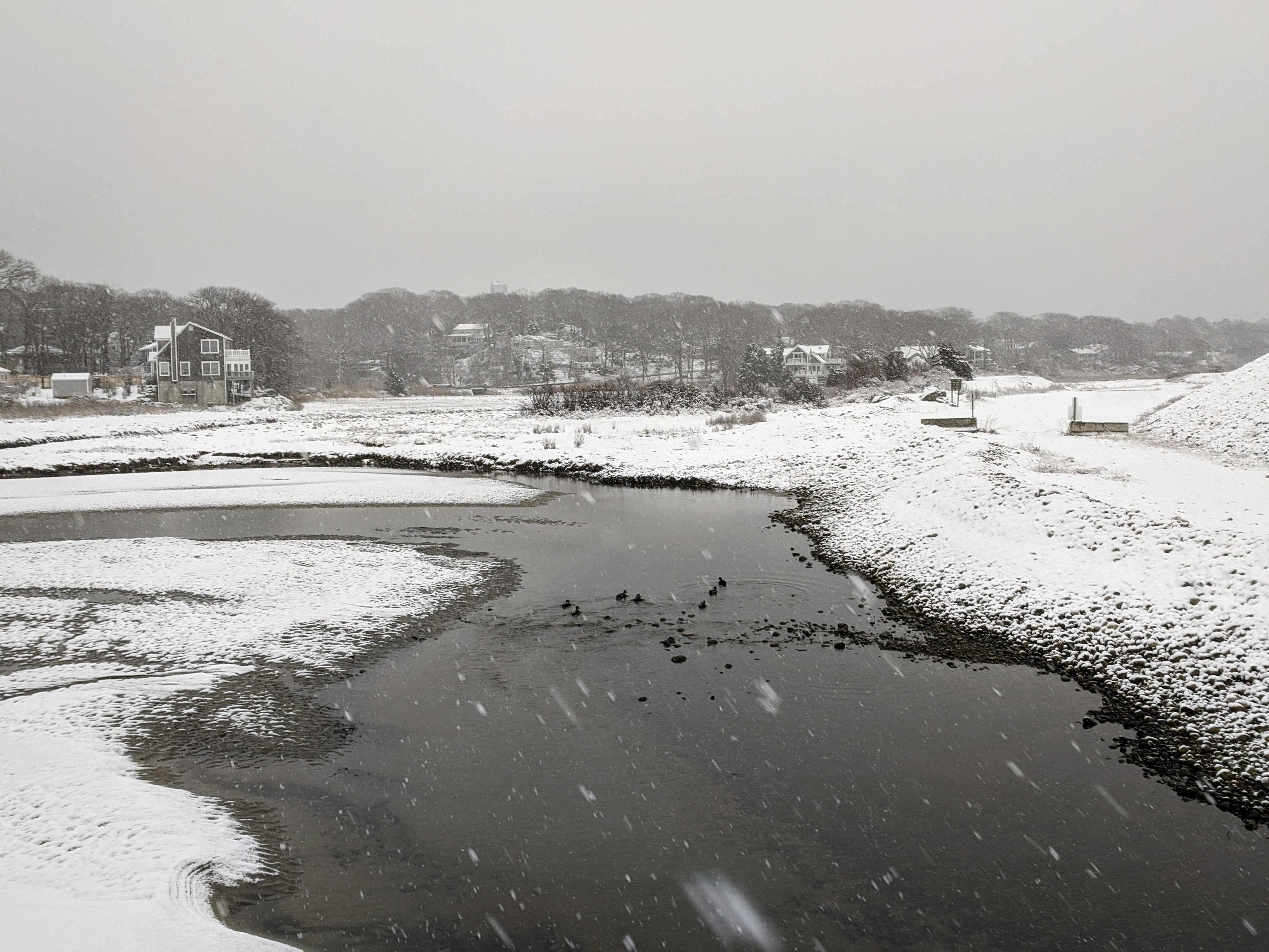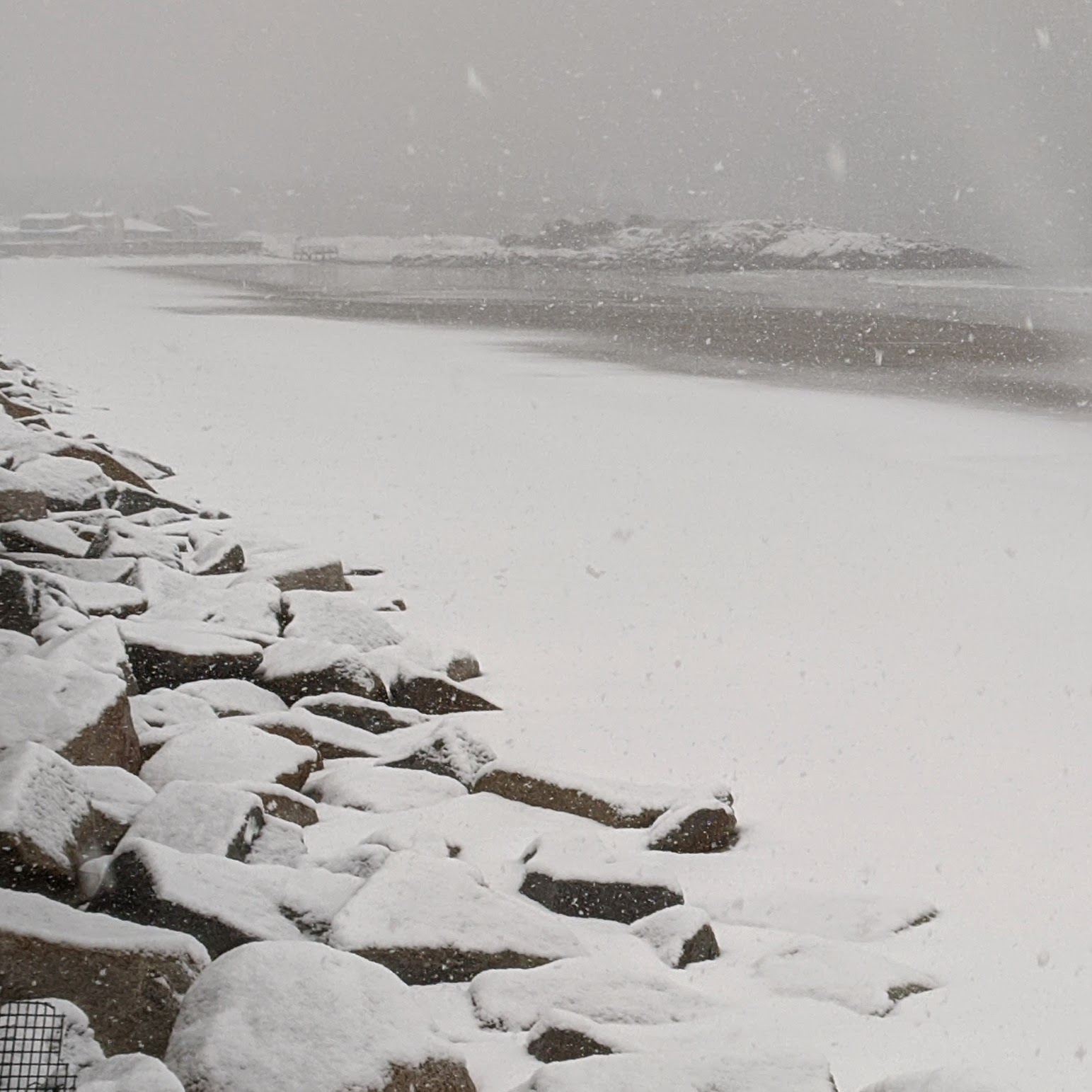 photos- views Long Beach Gloucester-Rockport. 9AM- with temperature hovering 32 mix snow and rain