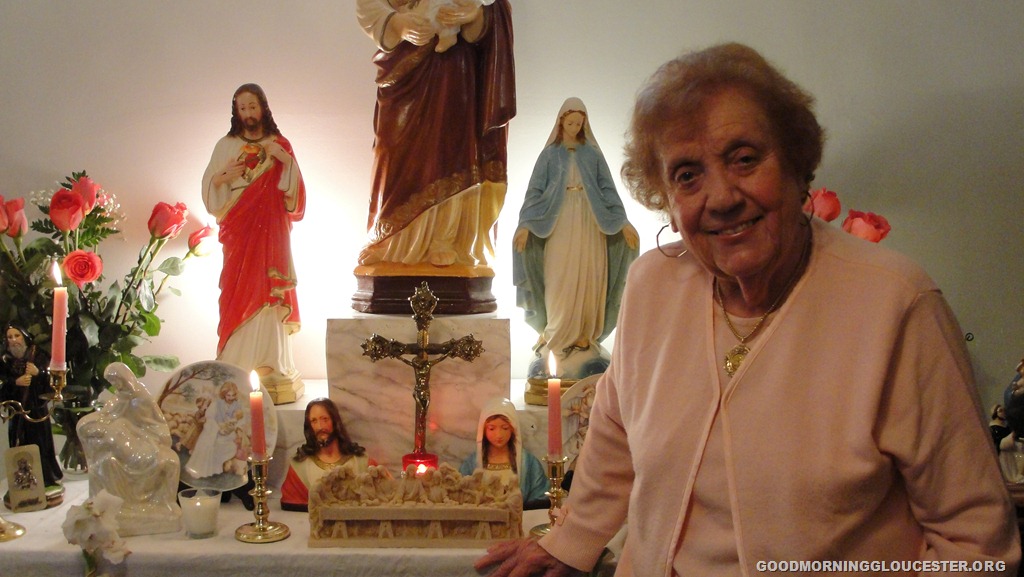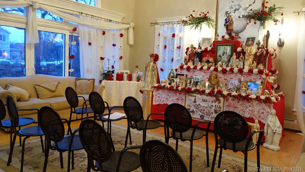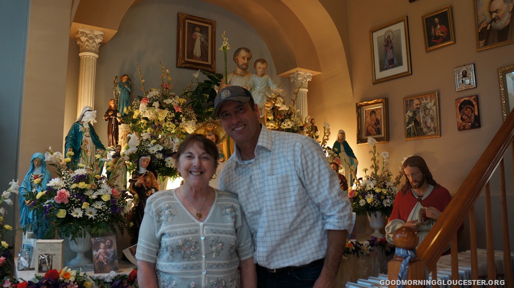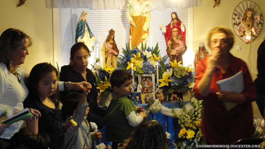 The Novena trolley was organized by Sefathia and the first one I went on was I think 4 years ago. Cape Ann Transportation CATA offers the trolley up and it picks everyone up at the Fitz Henry Lane House and they make the rounds and go to about 12 different people’s homes who have St Joseph’s Novenas and Altars. Men and women and children can go on the trolley but it’s mostly women.