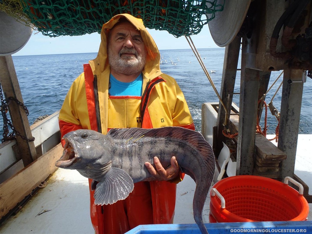 Just ask Dr. Elizabeth Fairchild, assistant research professor at the University of New Hampshire (UNH) and lead investigator for the Northeast Wolffish Tagging Project. For the past few weeks, Fairchild has has been wrangling, tagging and releasing wolfs aboard two commercial draggers, the F/V Stormy Weather (Capt. Carl Bouchard) and the F/V Lisa Ann II (Capt. Jim Ford), departing from the Gloucester Marine Railway on Rocky Neck. Assisting Fairchild in these tagging endeavors—restraining an angry 25-pound wolffish isn’t a one-man job—are Dr. Shelly Tallack, research scientist at the Portland-based Gulf of Maine Research Institute (GMRI), and GMRI interns Willy Goldsmith and Kristina Thorpe.