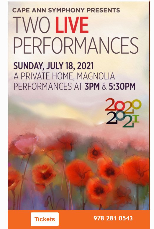 The Cape Ann Symphonyโs Musicians Unleashed programs were launched in 2019 and have become a wonderfully popular series with overwhelmingly enthusiastic audience response. Romantic Reveries is Sunday, February 12 at 3:00 PM at the St. Paul Lutheran Church, 1123 Washington St, Gloucester, MA Ticket prices for Romantic Reveries are $40 for Adults and $15 for Youth. Call Cape Ann Symphony at 978-281-0543 or go to http://www.capeannsymphony.org for tickets.