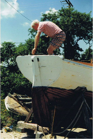 One hot summer day in 1987, Joe invited me for a sail on “The Hare.” By the time we had rowed out to the boat, set sail and cast off the mooring, the breeze had dropped to about 5 knots. By the time we reached mid-harbor, it was almost undetectable.
