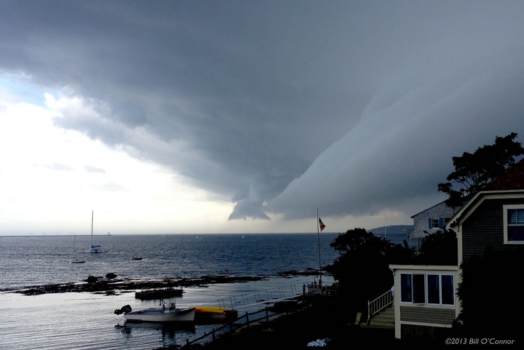 I caught this formation over Gloucester Harbor Wednesday afternoon. This was part of the storm that the tornado warnings were issued about today. I was looking at the radar map on Weather.com and saw this red spot heading toward Gloucester. When I looked outside this is what I saw!