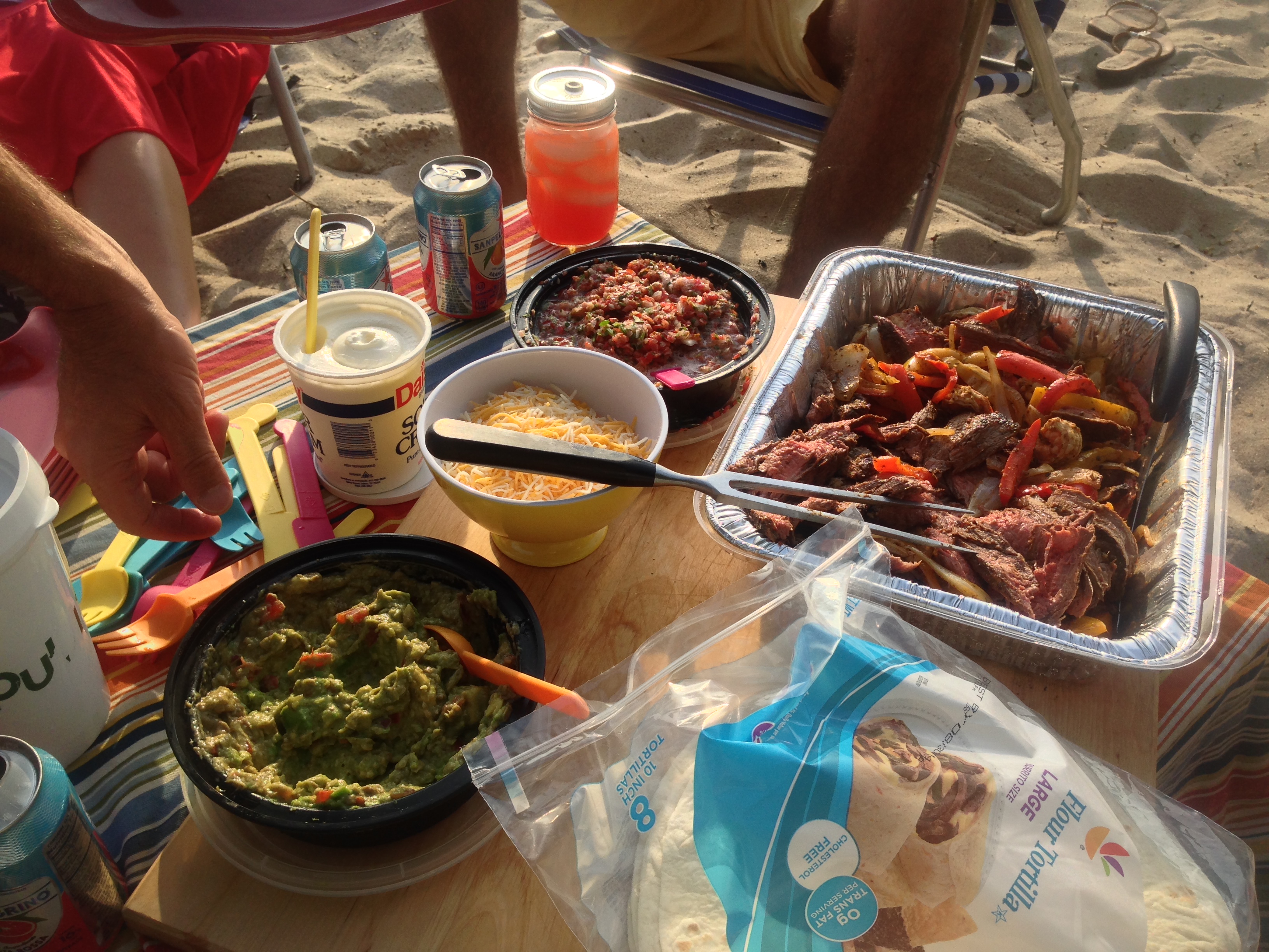 Now that St. Peter has been placed back in the window of the St. Peter’s Club, and all the festivities and tradition’s surrounding “The 2014 Fiesta of St. Peter” are officially in the history books forever, it’s time to switch gears and prepare for Fourth of July barbeques, and Gloucester’s Fishtown Horribles Parade held July 3rd! Over the next few days I will be posting several recipes perfect for this upcoming week of summertime fun! Last night family and friends enjoyed today’s recipe “Grilled Surf & Turf Tequila Chipotle Flank Steak & Shrimp”Fajitas” at Niles Beach for dinner as the sun began to set.