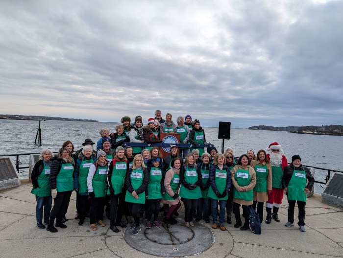 Photo & video caption: Scenes from the Dedication Ceremony and reveal for the new permanent public art commission on Stacy Boulevard, ‘Fish Baskets’, 4 bronze planters by sculptor Chris Williams. Landscape design by Ann Gilardi Johnson. Support for the project was spearheaded by Generous Gardeners, Gloucester DPW, the City & State, Gloucester 400+, and generous donors. Ann Gilardi Johnson and Chris Williams have the long color design goal in mind. After several years, the four bronze planters will naturally oxidize as a protective coating forms, covering the surface with a green patina. They are intended to age and complement the iconic and cherished copper-green of Gloucester’s Fisherman at the Wheel.