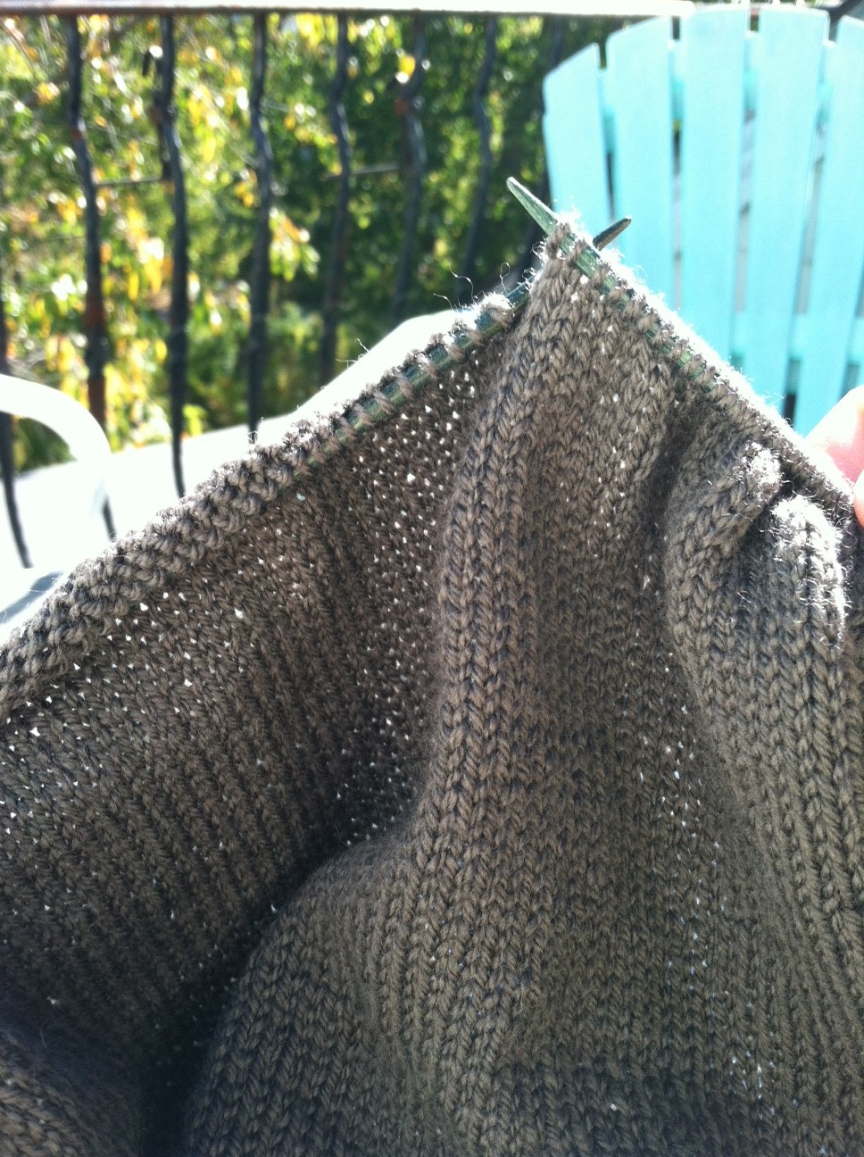 Close to the great divide… A few more rows and the body and sleeves will begin to take shape