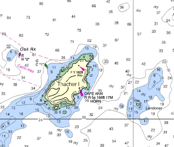 (By the way, you can download NOAA’s printable pdf navatigation chart of Rockport and Gloucester inshore waters for $2.75 at NOAA 13279)
