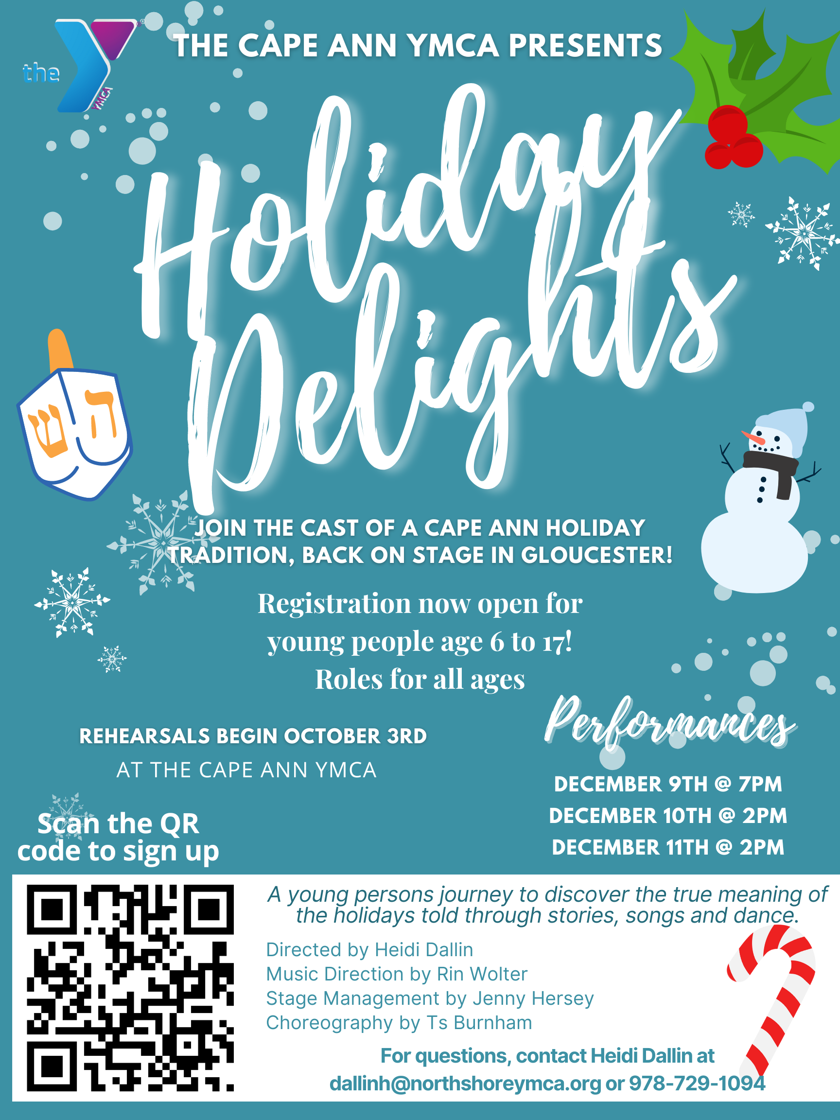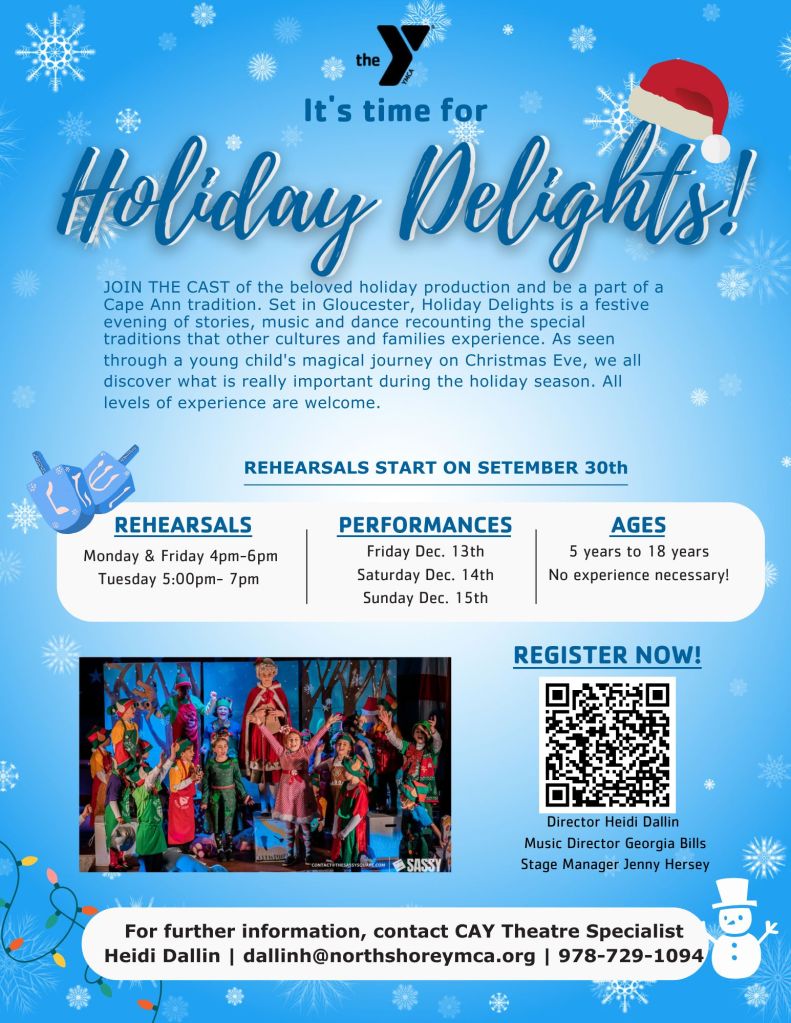 “Theater at the Cape Ann YMCA kicks off with a Holiday Delights Performance Workshop during which student actors can learn the basics of professional theater as well as be part of a Cape Ann holiday tradition.