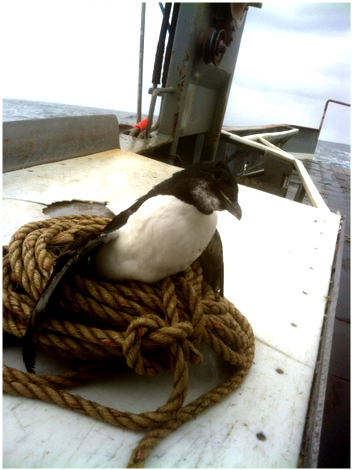 Michelle Barton and Chris Anderson shepherded this little seabird back to the water after it was seen blown into a telephone pole and onto the ground. Many thanks to Chris and Michelle for taking care of the Arctic voyager and for sharing their photos..