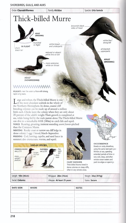 I read that Thick-billed Murres have very pointy eggs and wanted to see what one looked like. Don’t you think they are beautiful? I love the shape, and patterns. Image courtesy Audubon.