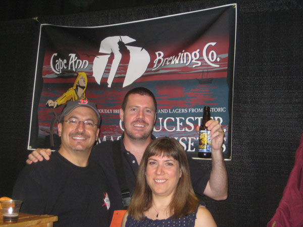 Here is a picture from the Craft Beer Brew Fest. We are with Tom Ryan “First Mate O’Sails” from Cape Ann Brewing Company.